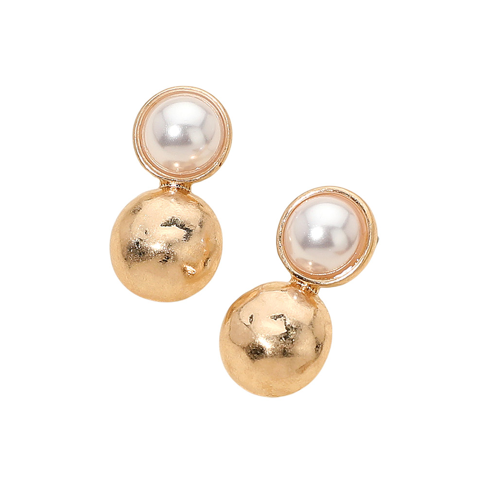 Details • Size : 0.5" X 0.8" • Post Back • These dual-dome stud earrings combine a smooth stone accent with a textured metallic sphere for a refined, modern look. Lightweight and versatile, they add subtle elegance to everyday outfits or dressy ensembles, making them an easy, stylish addition to any jewelry collection. • Lead and Nickel Compliant