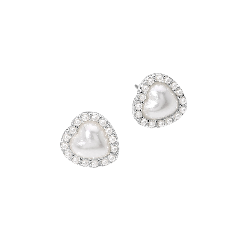 Details • Size : 0.5" X 0.5" • Post Back • Romantic heart stud earrings adorned with a sparkling crystal border for a charming and elegant look. These timeless earrings add a delicate touch of sophistication, making them a perfect accessory for both casual outfits and special occasion ensembles. • Lead and Nickel Compliant