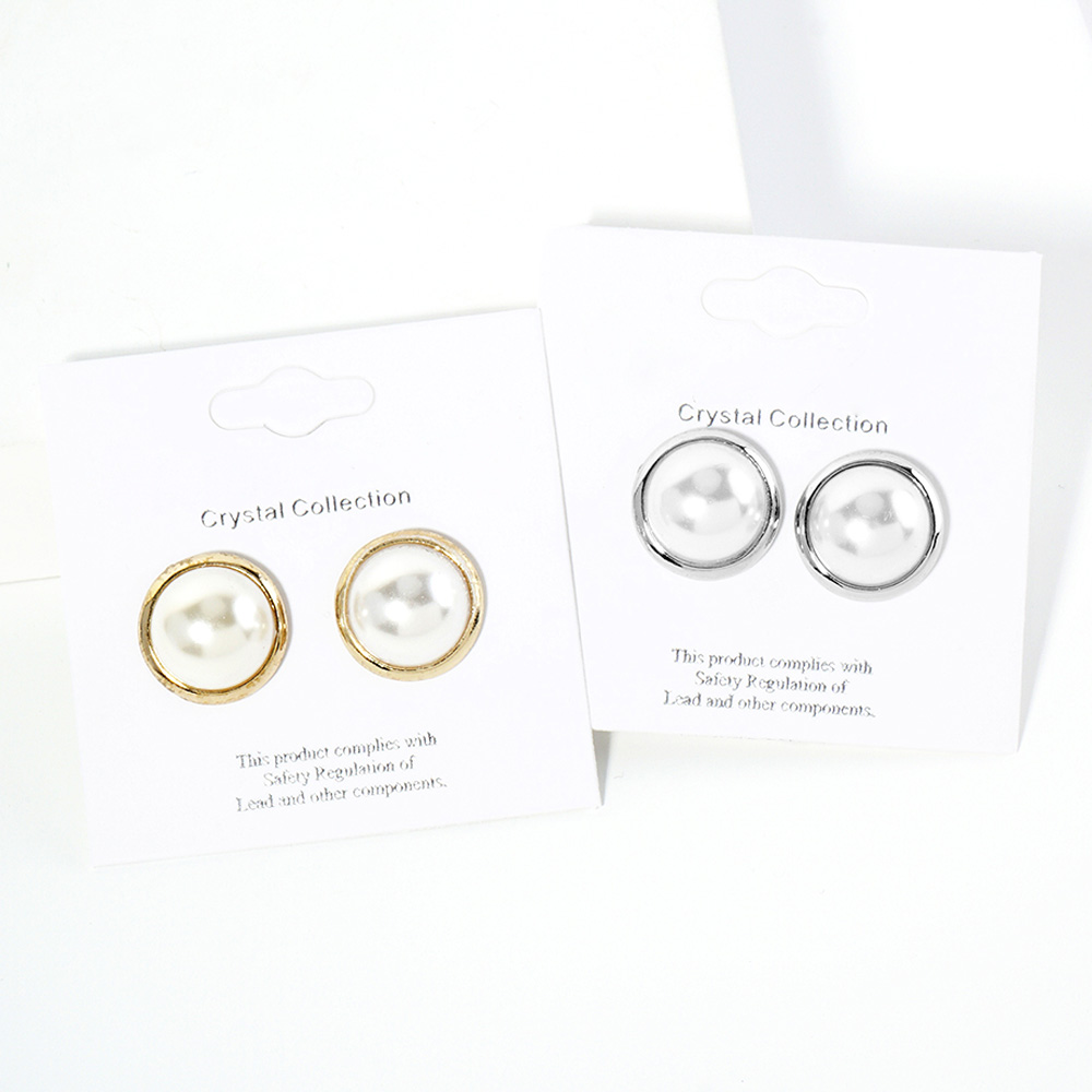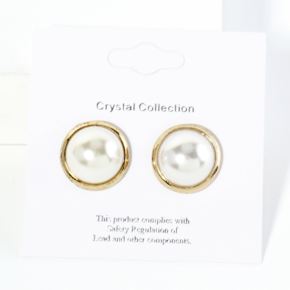 Details • Size : 0.6" X 0.6" • Post Back • Elegant pearl stud earrings featuring a smooth round finish framed in a sleek setting. Lightweight, comfortable, and perfect for adding timeless sophistication to both casual and formal looks. Hypoallergenic design for all-day wear. • Lead and Nickel Compliant