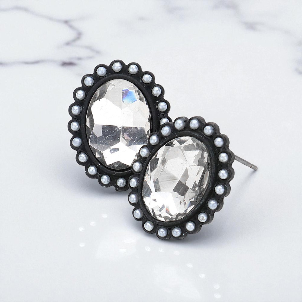 Pearl Accent Elegant Stone Cluster Drop Evening Earrings