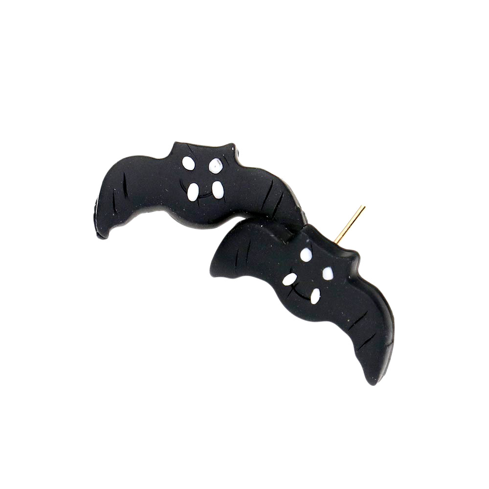 Details • Size : 0.8" X 0.4" • Post Back • Add spooky charm to your outfit with these bat-shaped stud earrings. Perfect for Halloween parties or themed events, these lightweight accessories bring playful style to your seasonal wardrobe. • Lead and Nickel Compliant