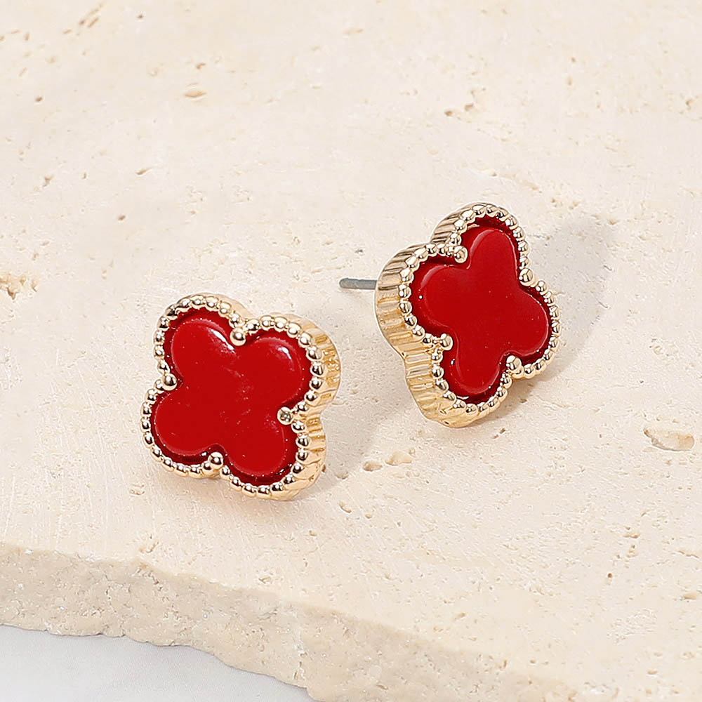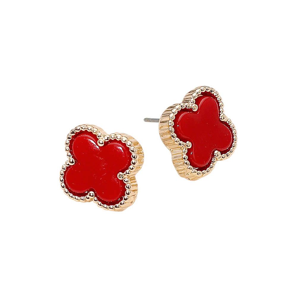 • Stylish stud earrings featuring a quatrefoil shape framed with textured trim for a chic, timeless look. Perfect for elevating everyday outfits or pairing with elegant attire, these earrings offer a touch of sophistication and modern simplicity in one graceful design.