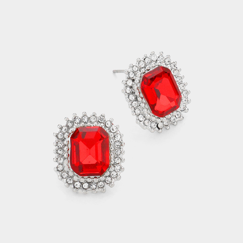 Rectangle Stone Stud Evening Earrings
