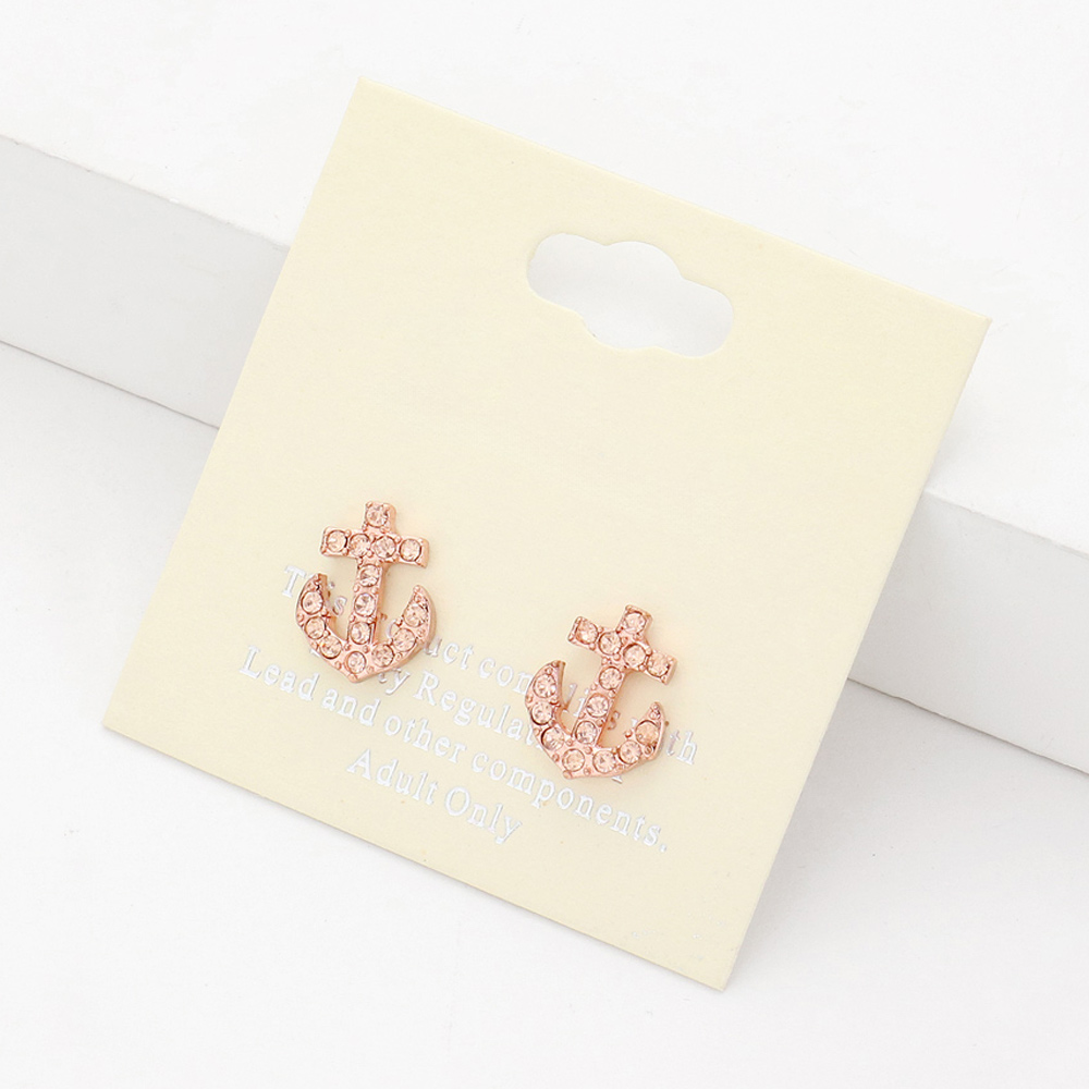 Rhinestone Anchor Stud Earrings
