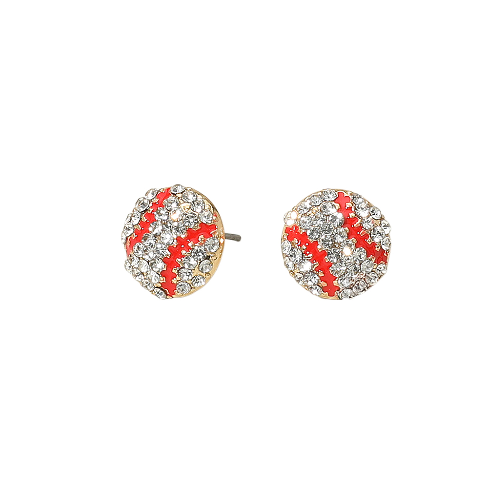 Details • Size : 0.5" X 0.5" • Post Back • Show off your love for the game with these dazzling baseball rhinestone stud earrings. A perfect sporty accessory with playful flair, ideal for fans, players, or anyone wanting a fun, spirited look. • Lead and Nickel Compliant