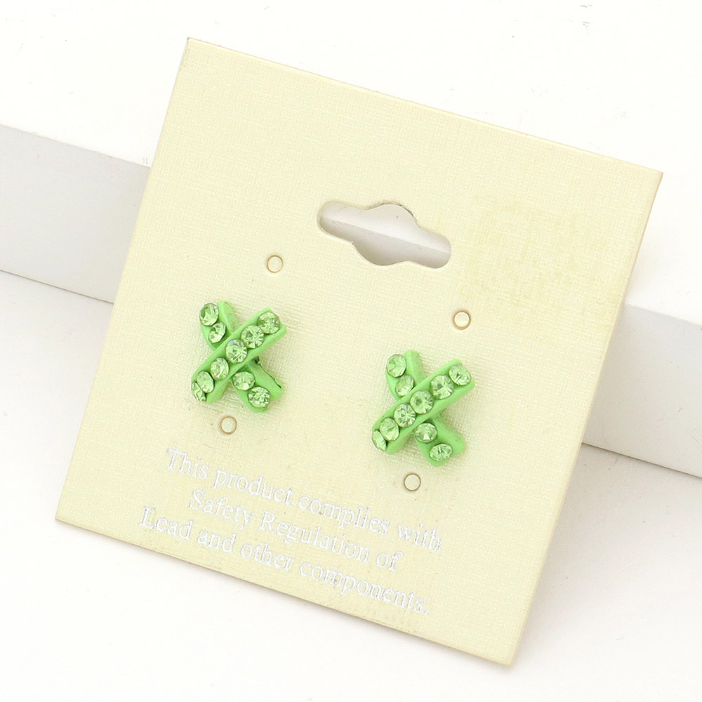 Rhinestone Embellished Crisscross Stud Earrings