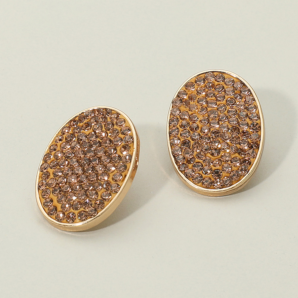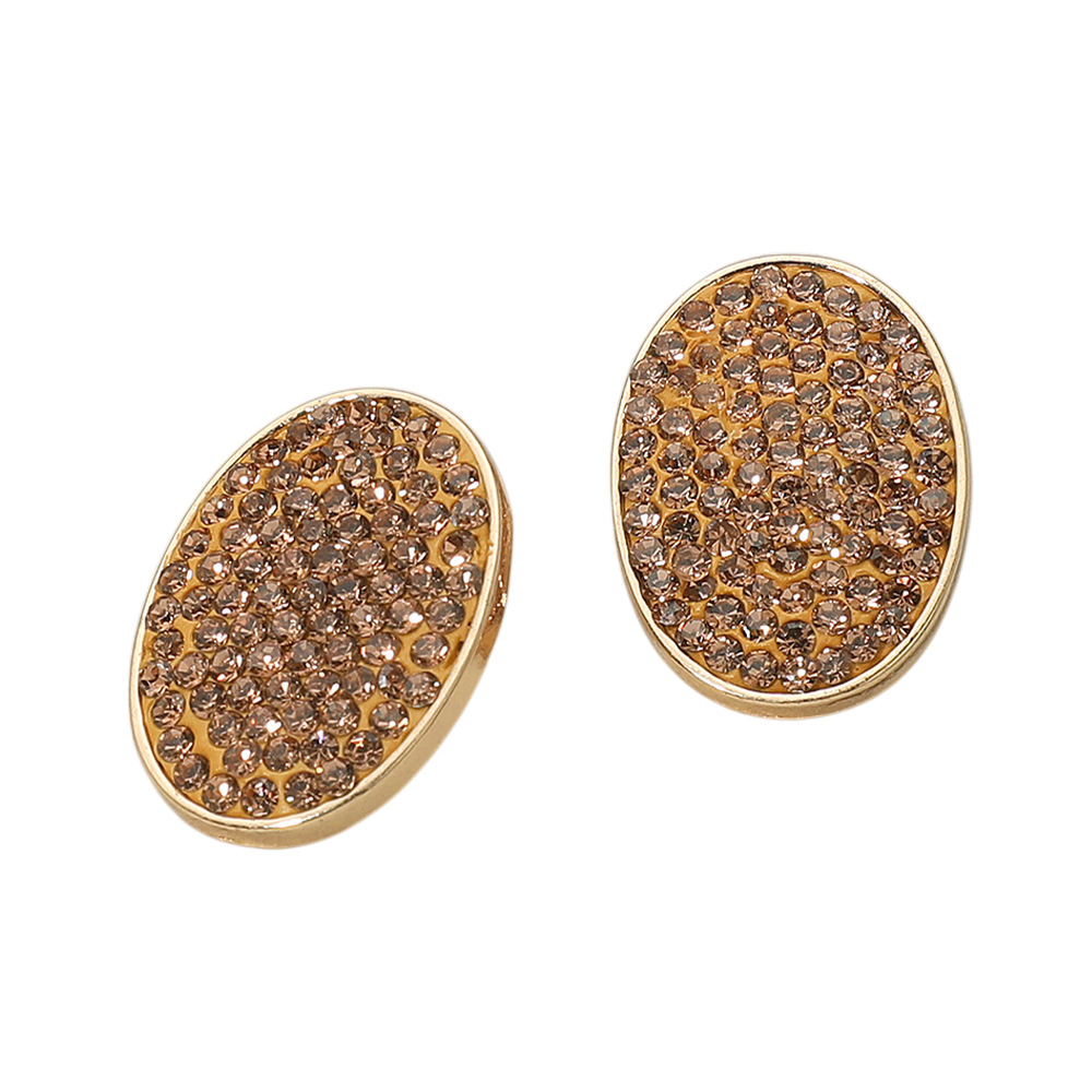 Details • Size : 0.75" X 1" • Post Back • Elegant oval stud earrings encrusted with shimmering rhinestones for a radiant finish. Lightweight and versatile, they add sparkle to casual outfits or evening attire. Perfect for everyday wear, parties, or gifting, these earrings offer timeless beauty and a touch of glamour to any jewelry collection. • Lead and Nickel Compliant