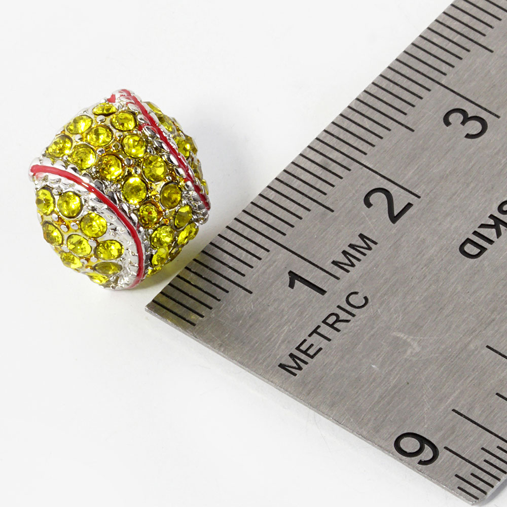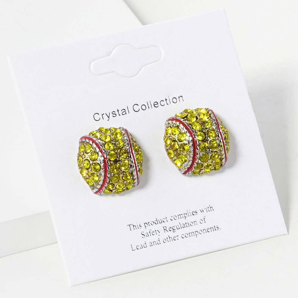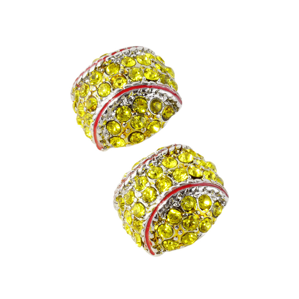• Fun and sporty tennis ball stud earrings covered in sparkling rhinestones. A playful accessory perfect for tennis lovers and game day outfits. Lightweight and easy to wear all day.