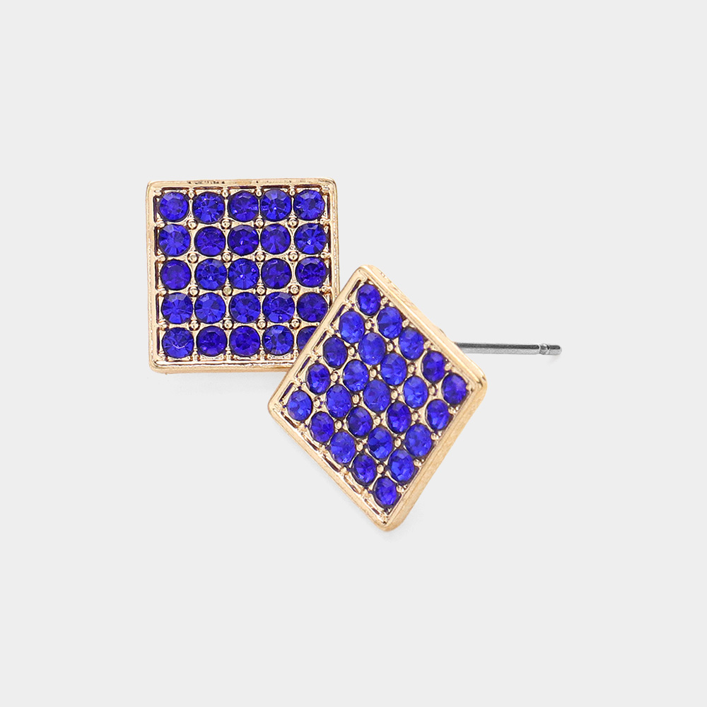Rhinestone Embellished Square Stud Earrings