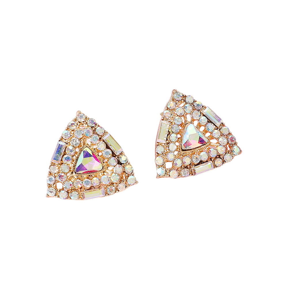 Rhinestone Embellished Triangle Evening Stud Earrings