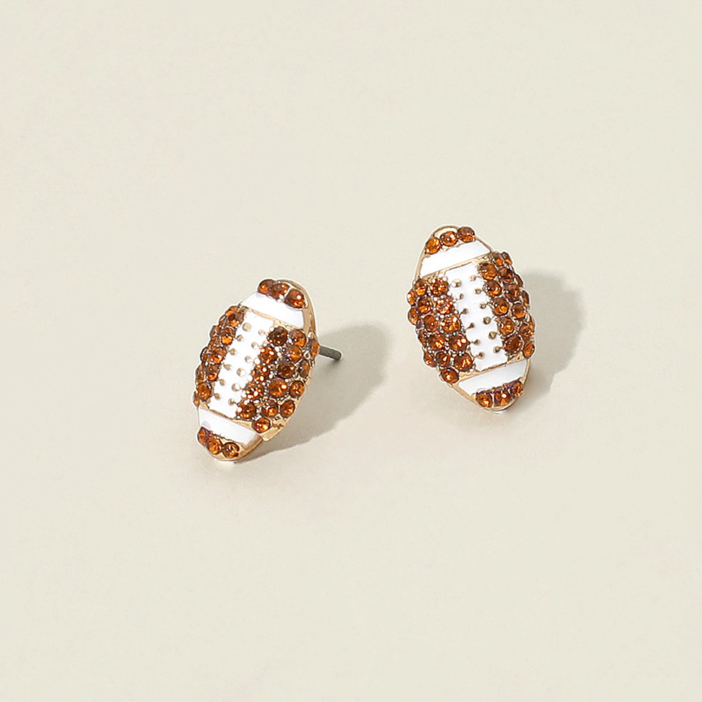Details • Size : 0.3" X 0.6" • Post Back • Add a sporty sparkle to your outfit with these football rhinestone stud earrings. Fun and eye-catching, they're perfect for game days, tailgates, or everyday wear for football fans who love a touch of glam. • Lead and Nickel Compliant