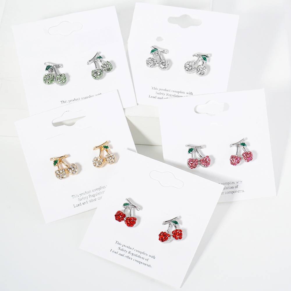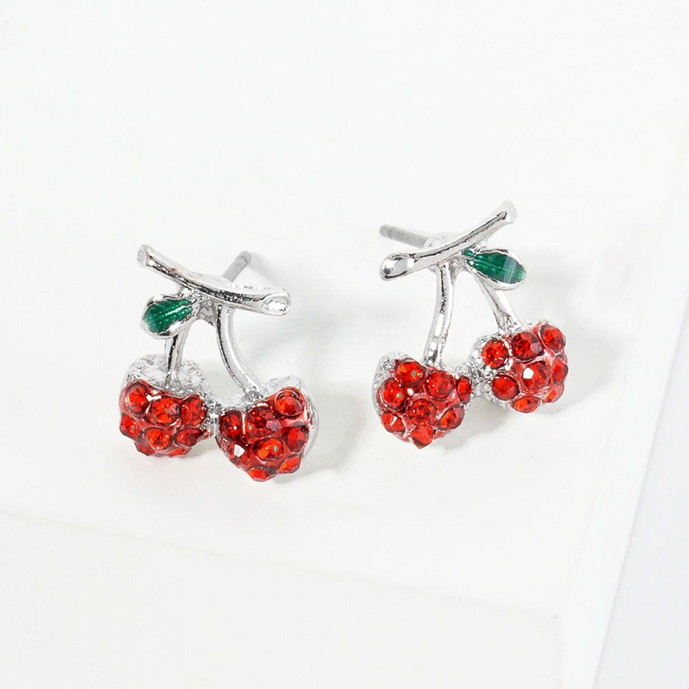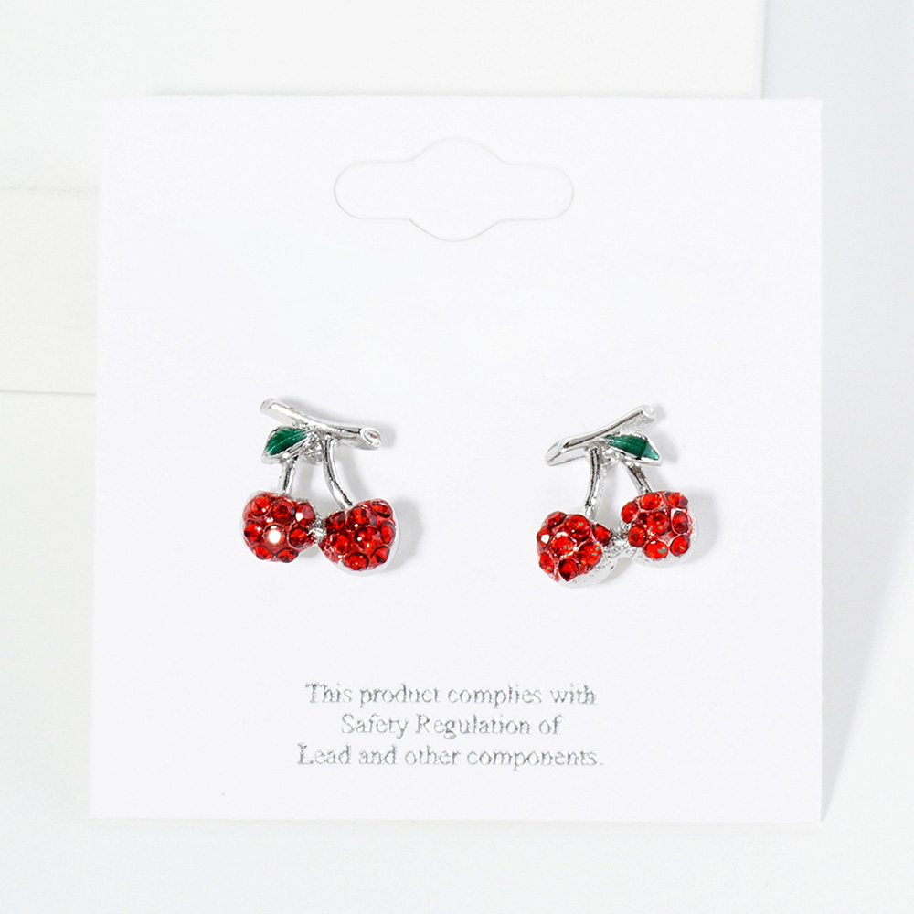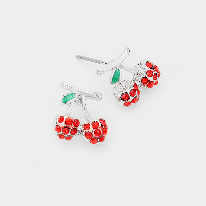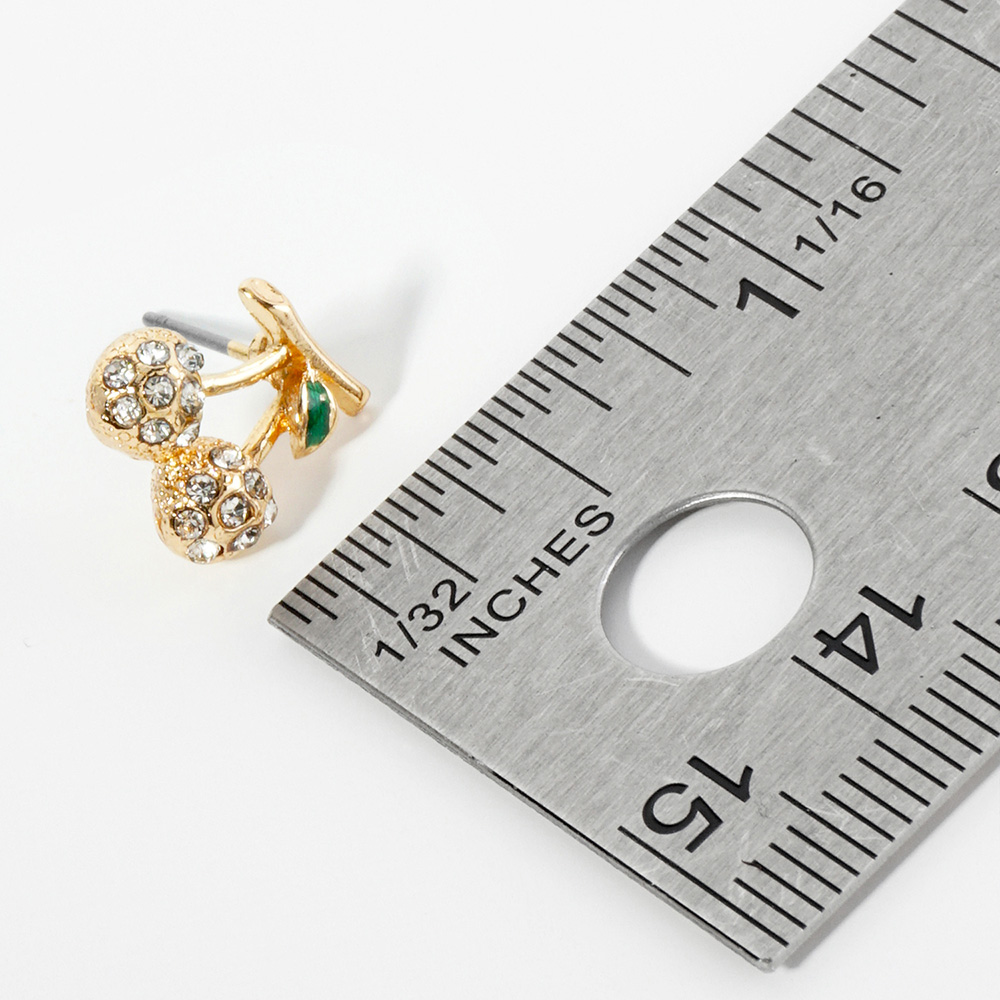 Details • Size : 0.4" X 0.4" • Post Back • Add a sweet and playful touch to your style with these cherry stud earrings, featuring shimmering crystal accents and charming detail. Perfect for fun, casual looks or gifting, they bring a pop of personality to any outfit. A cheerful accessory for fruity flair and sparkle. • Lead and Nickel Compliant