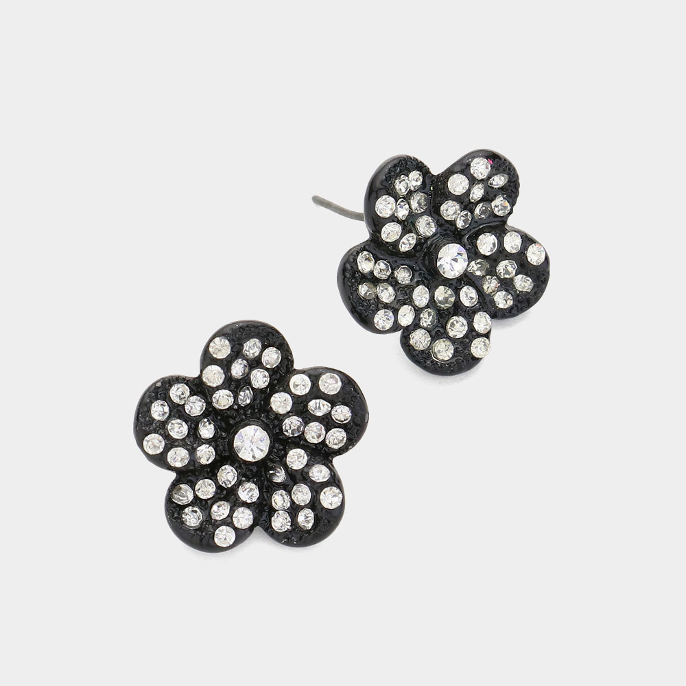 Flower Teardrop Stone Embellished Chandelier Dangle Earrings