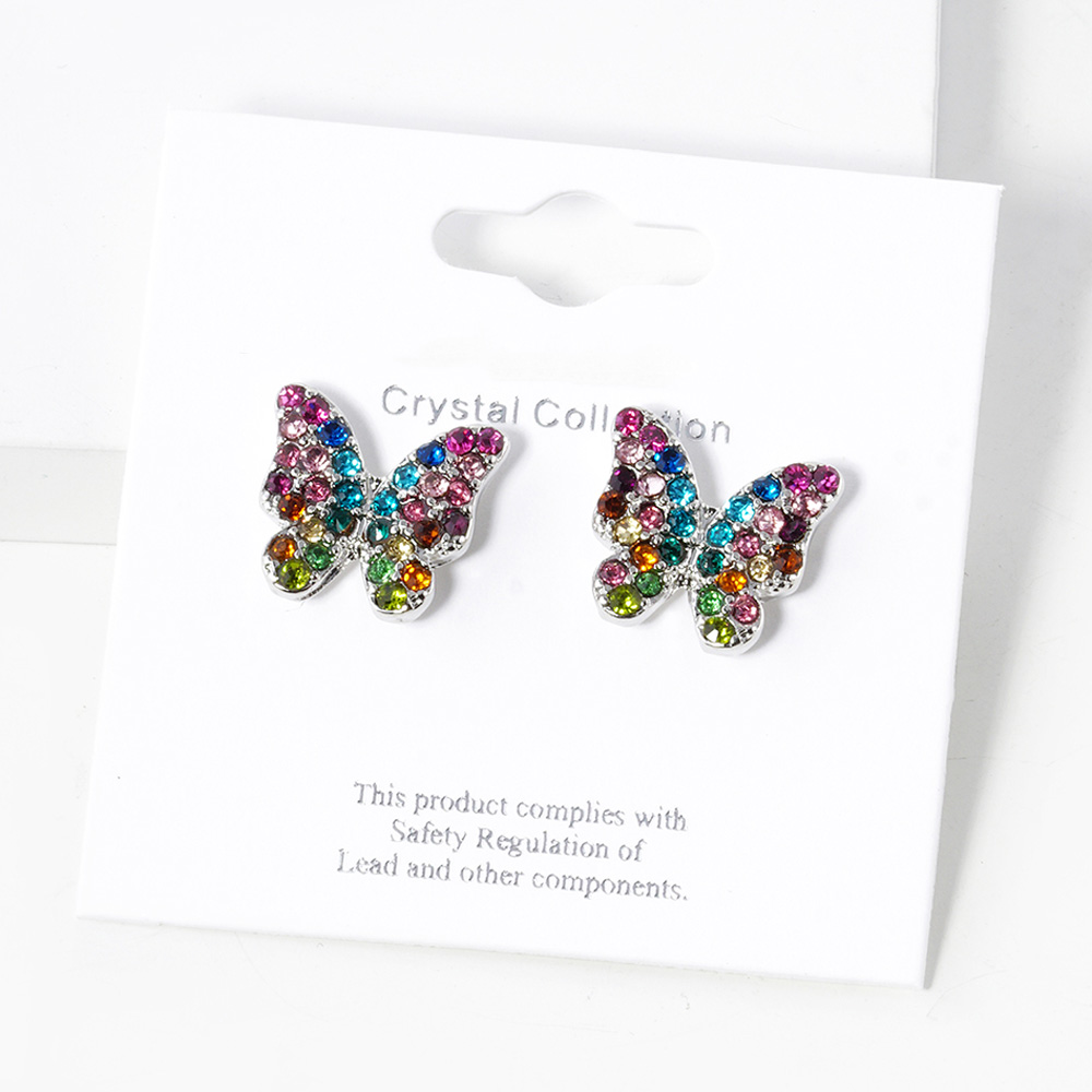 12Pairs - Rhinestone Embellished Double Butterfly Link Dangle Earrings