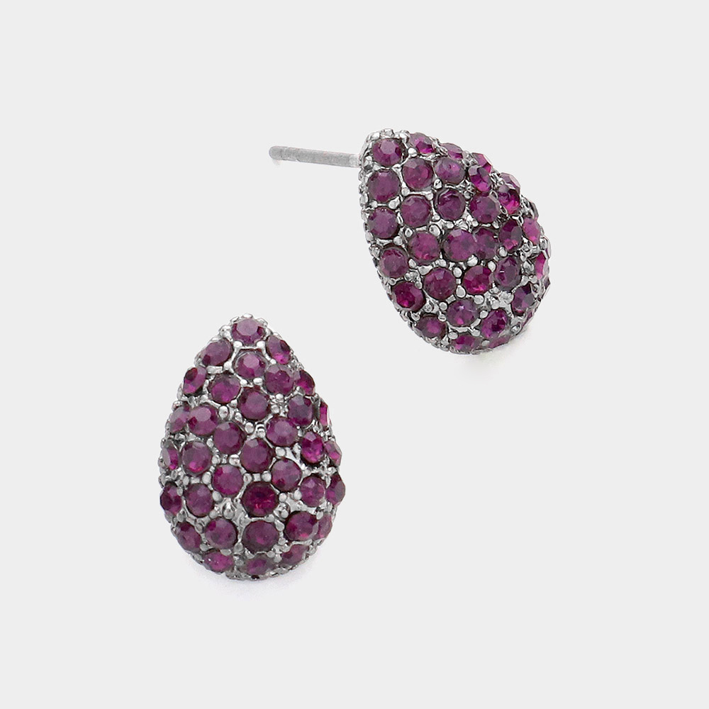 Sterling Silver Post Rhinestone Studded Chunky Hoop Earrings