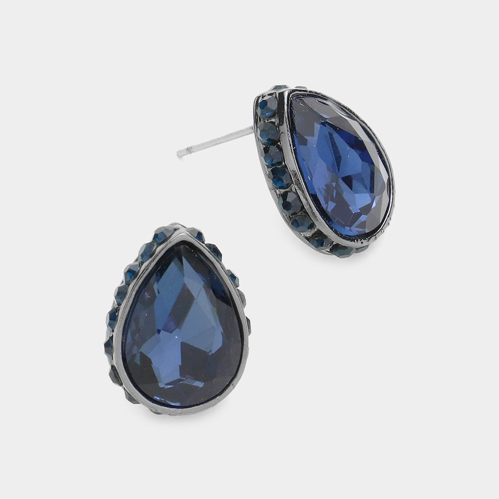 Rhinestone Trimmed Teardrop Stone Evening Stud Earrings