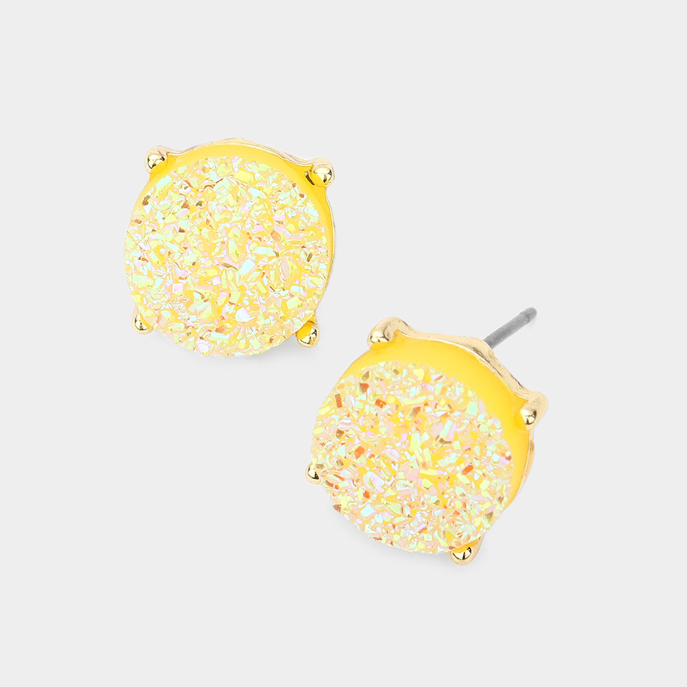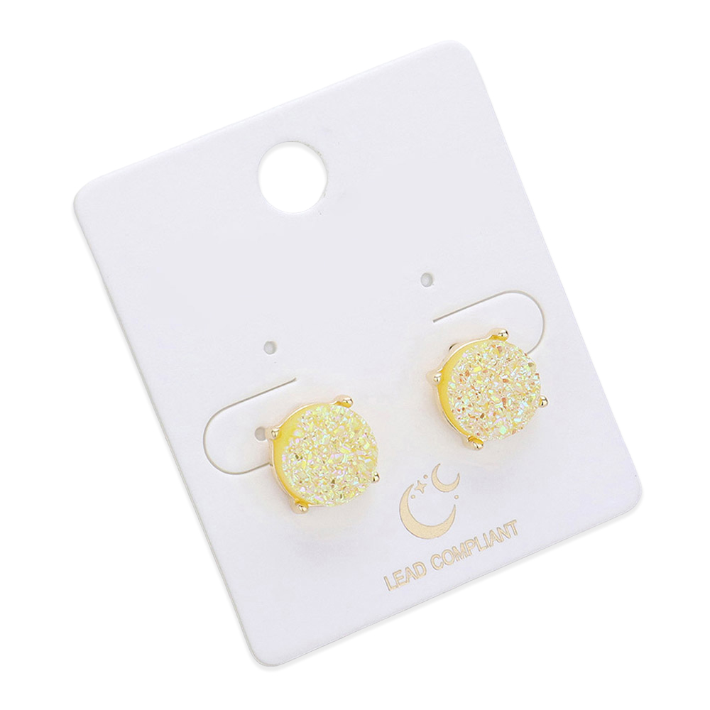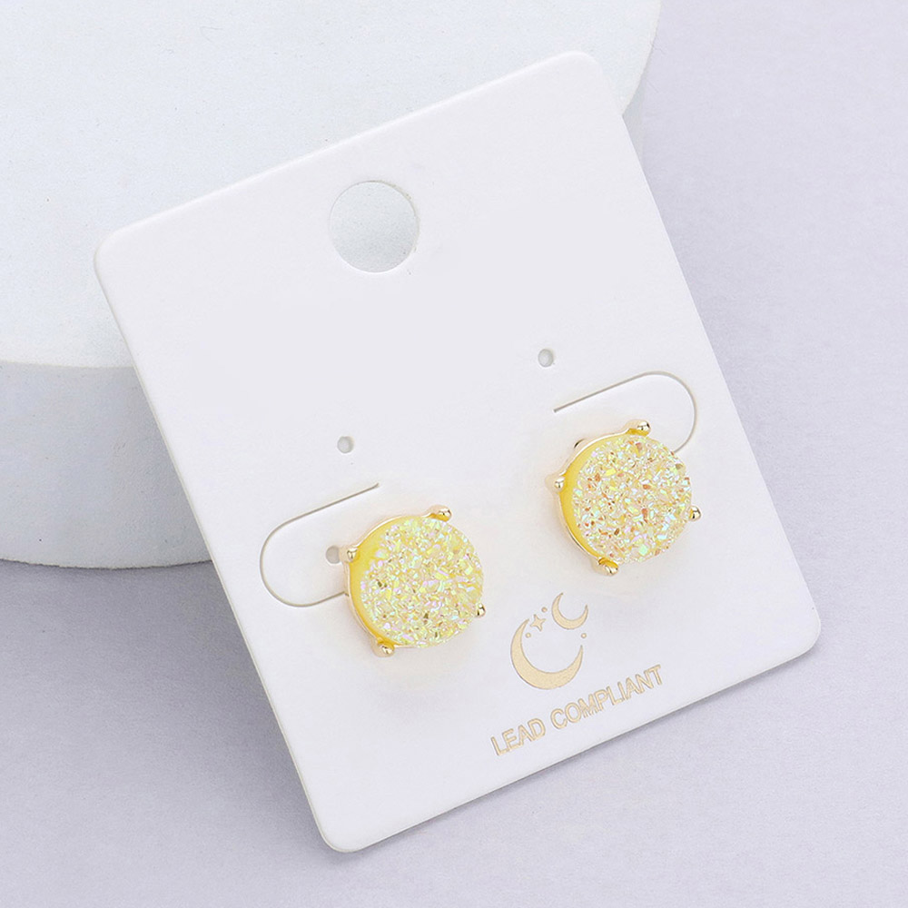 Rhinestone Trimmed Druzy Heart Stud Earrings
