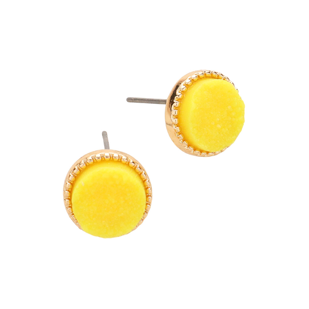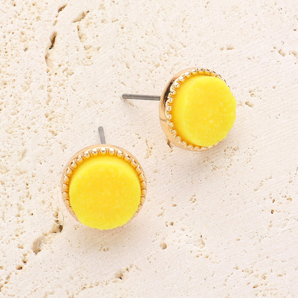 Round Faux Druzy Stone Stud Earrings