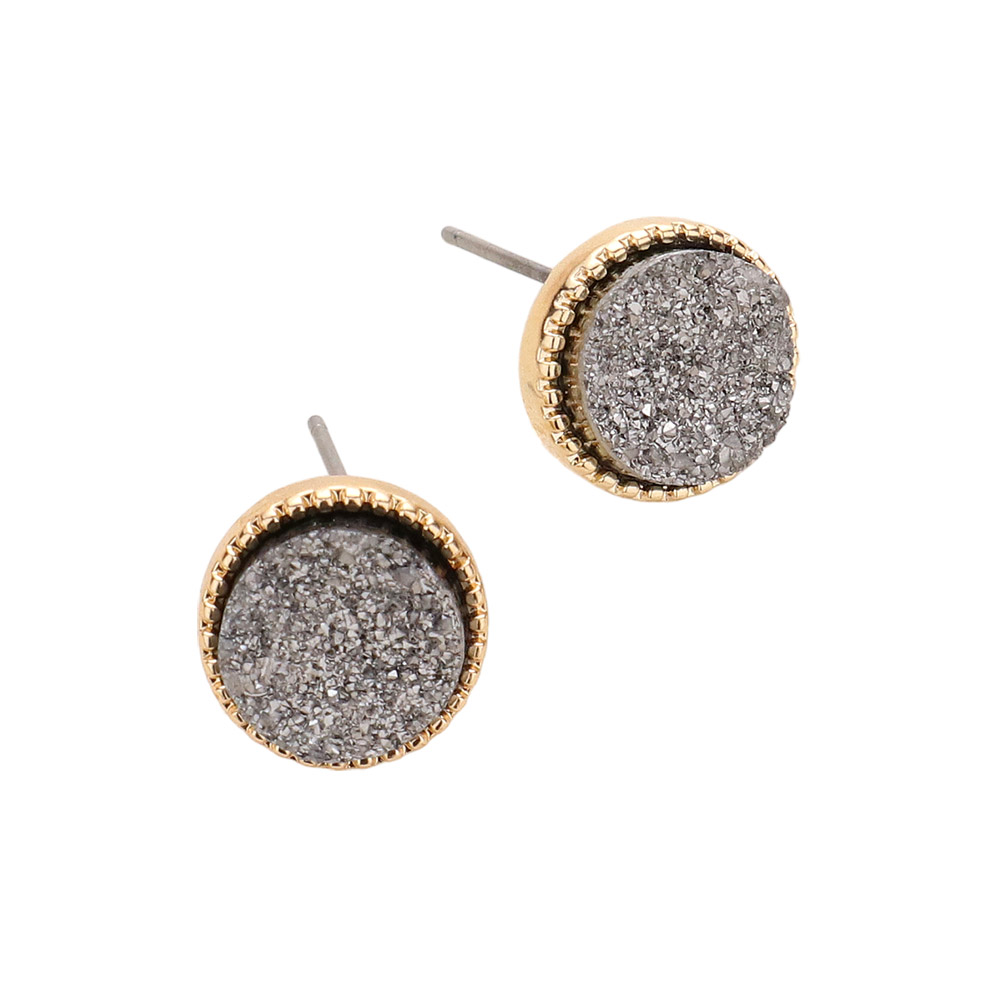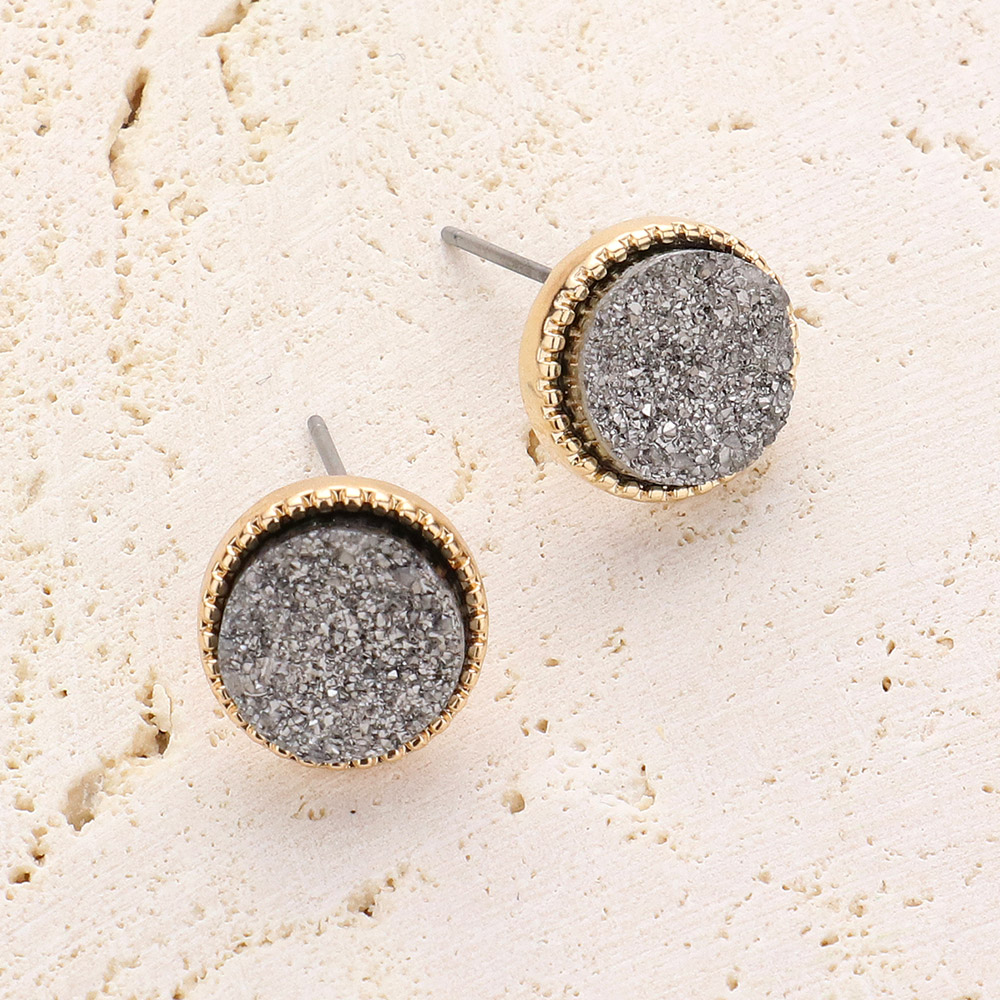 Round Druzy Scratched Metal Arch Link Dangle Earrings