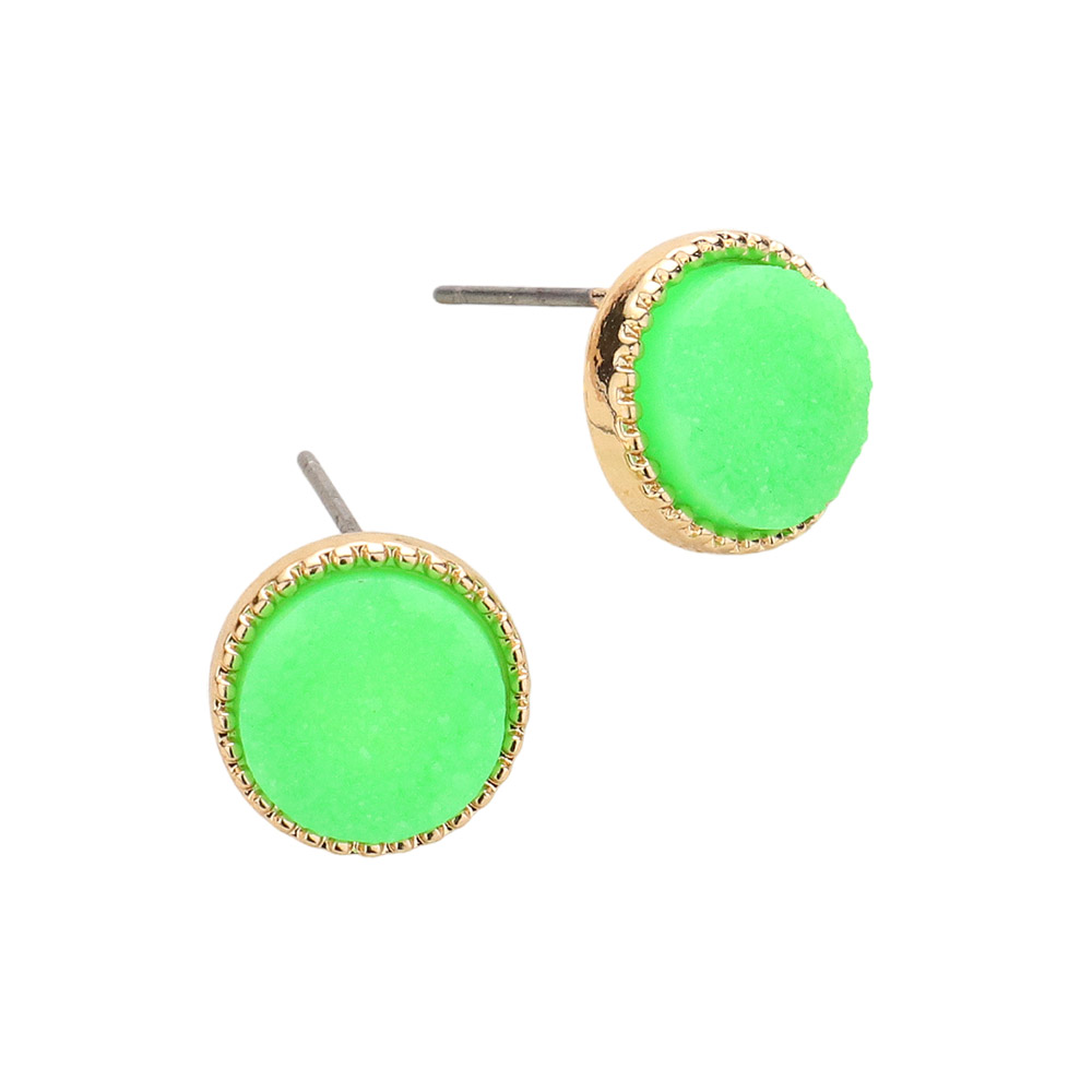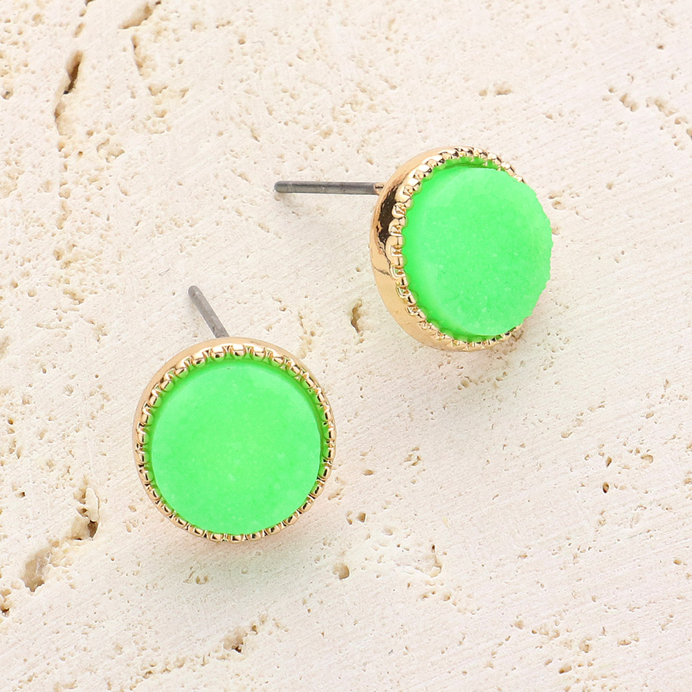 Round Druzy Stud Earrings