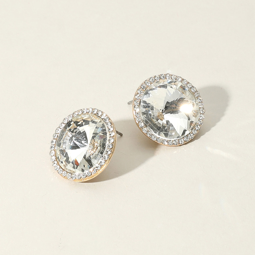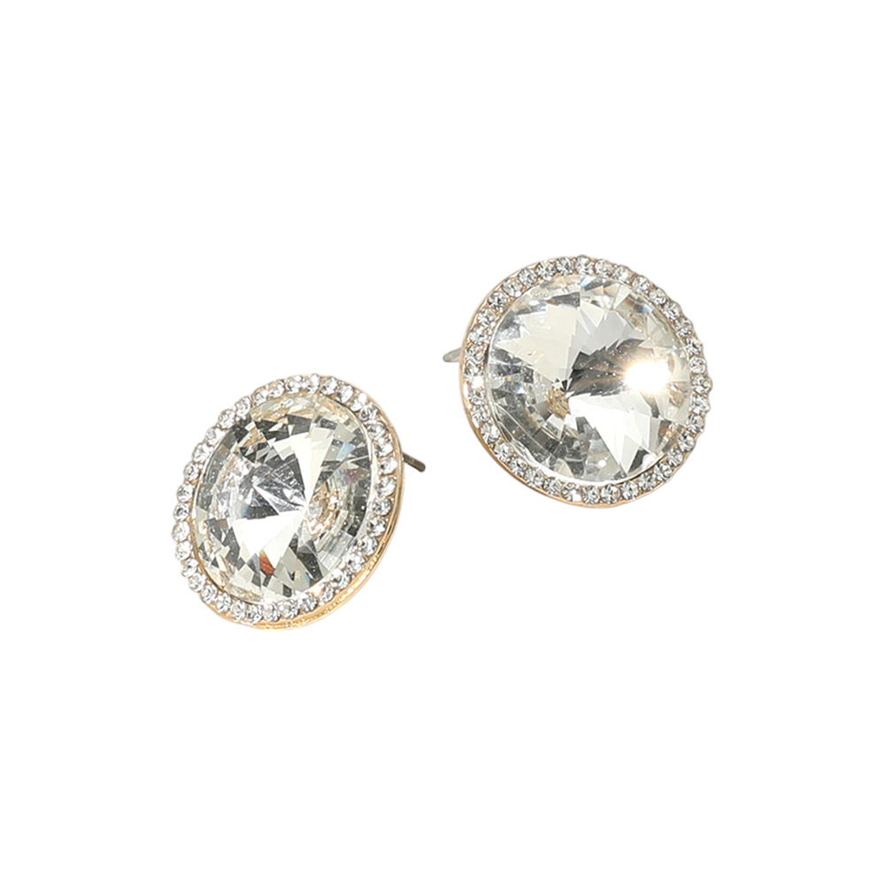 Stone Embellished Brass Metal Patterned Oval Dangle Earrings