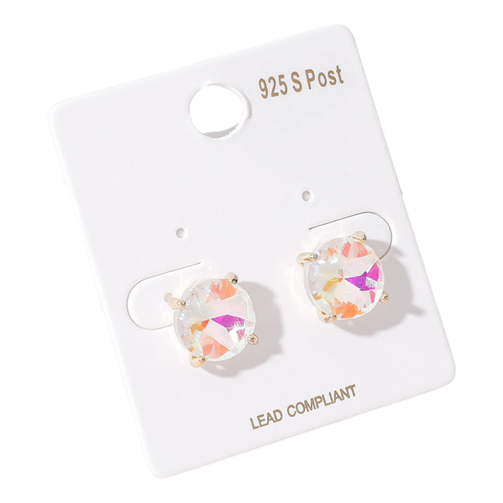 Details • Size : 0.4" X 0.4" • Elegant round crystal stud earrings featuring a secure 925 post design. A timeless accessory that adds a refined touch to everyday or formal looks. Lightweight and versatile for all occasions. • Lead and Nickel Compliant • Sterling Silver Post