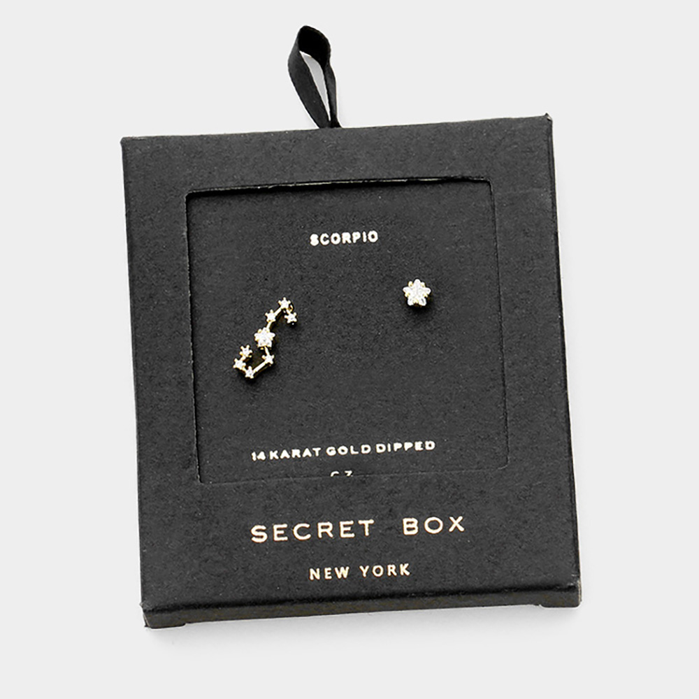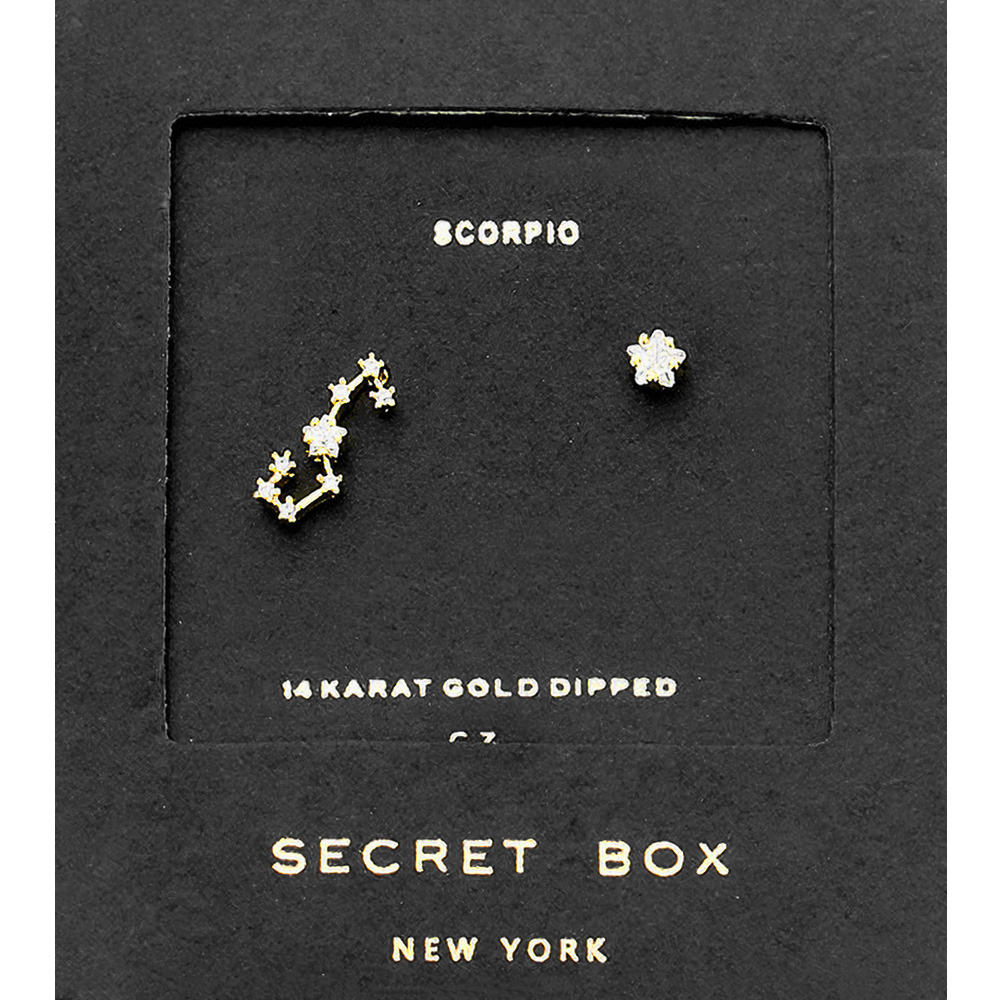 Secret Box_14K Gold Dipped CZ Stone Paved Scorpio Zodiac Sign Stud Earrings