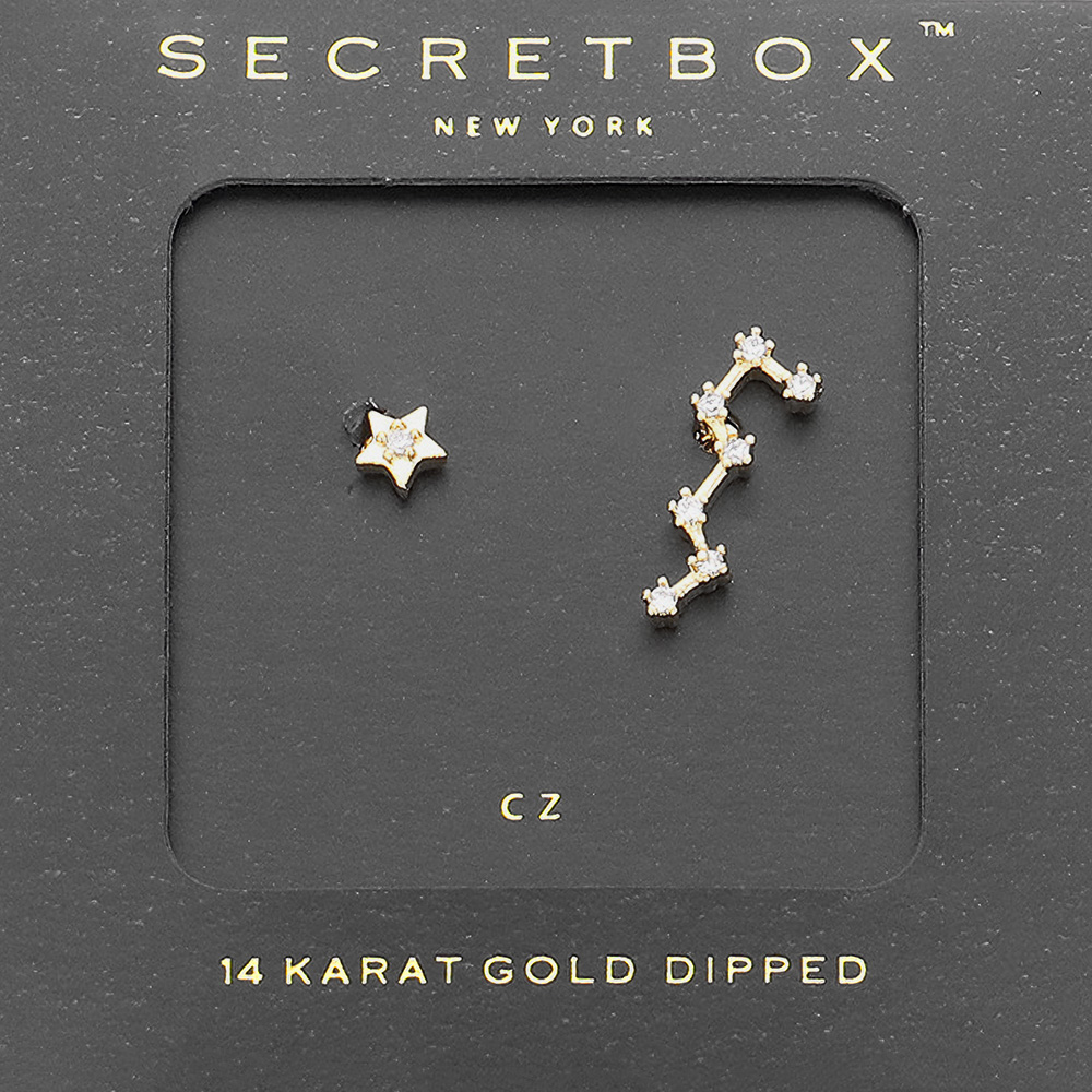 SECRET BOX_14K Gold Dipped CZ Stone Paved Unbalance Star Earrings