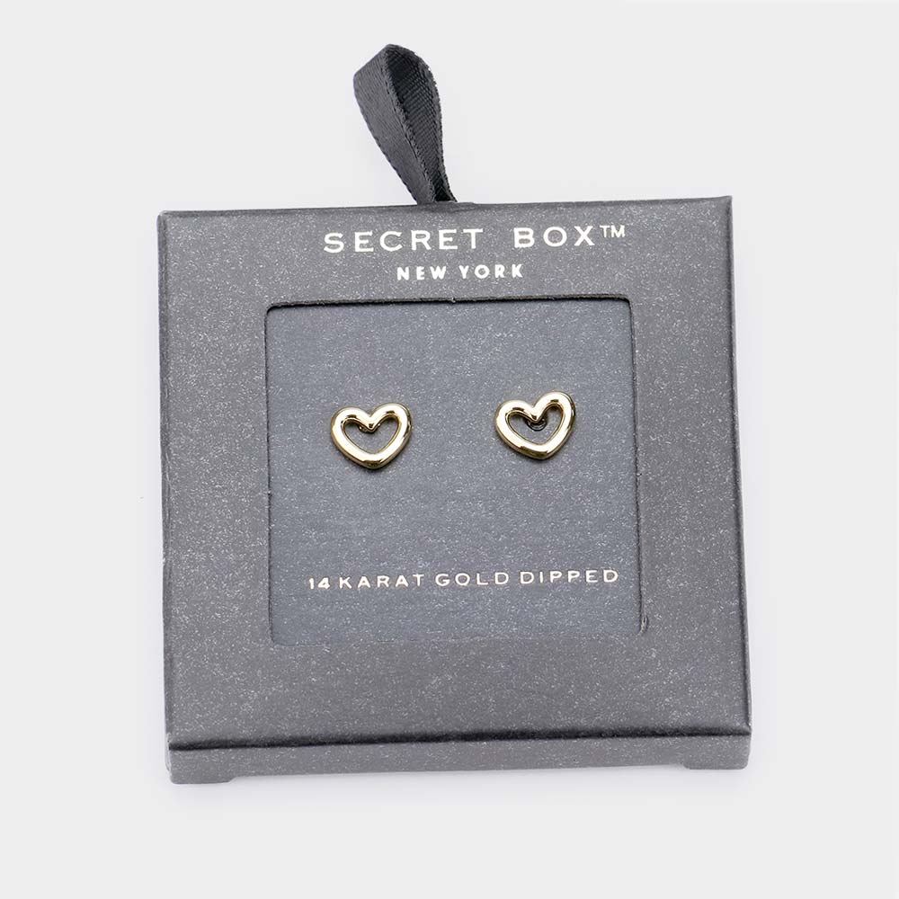 Secret_Box - 14K Gold Dipped Heart Stud Earrings