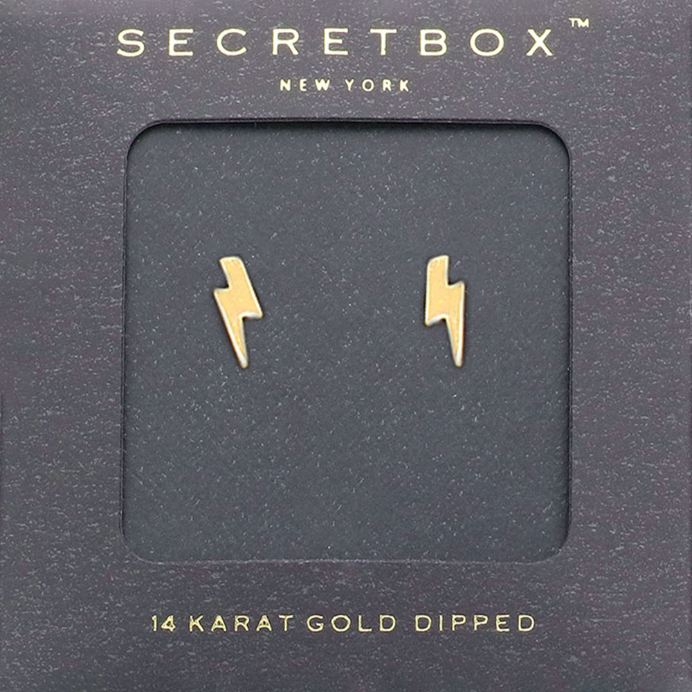 SECRET BOX_14K Gold dipped Lightning Bolt Stud Earrings