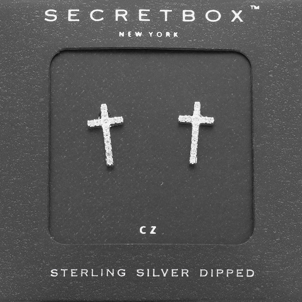 SECRET BOX_Sterling Silver Dipped CZ Cross Stud Earrings