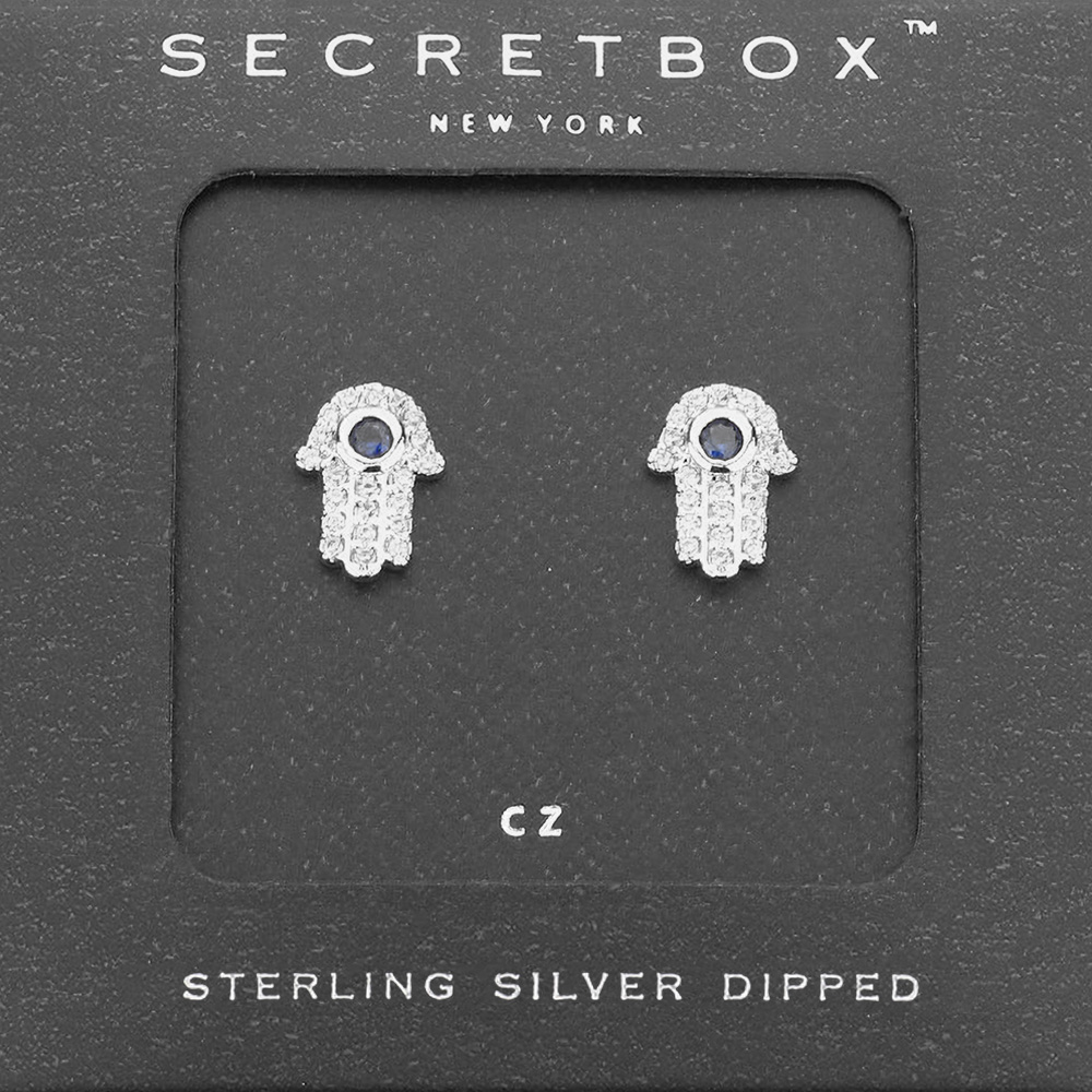 SECRET BOX_Sterling Silver Dipped CZ Hamsa Hand Stud Earrings