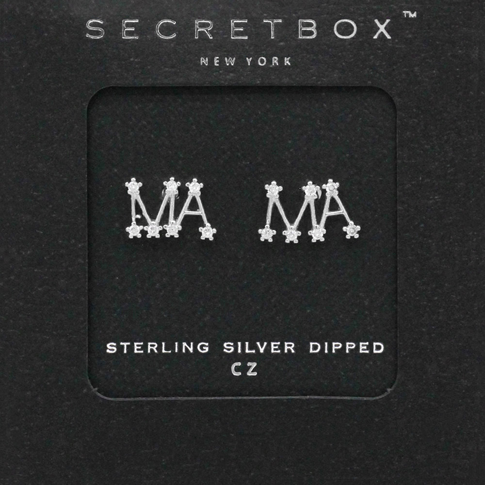 SECRET BOX_Sterling Silver Dipped CZ MAMA Stud Earrings