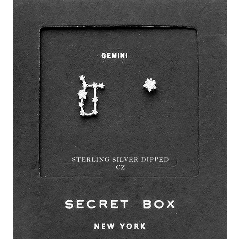 Secret Box_Sterling Silver Dipped CZ Stone Paved Gemini Zodiac Sign Stud Earrings