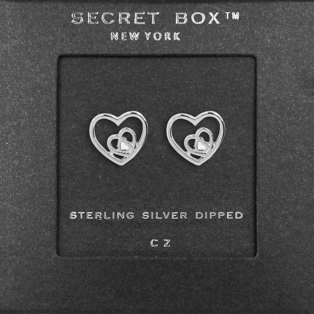 SECRET BOX_Sterling Silver Dipped CZ Triple Metal Heart Stud Earrings