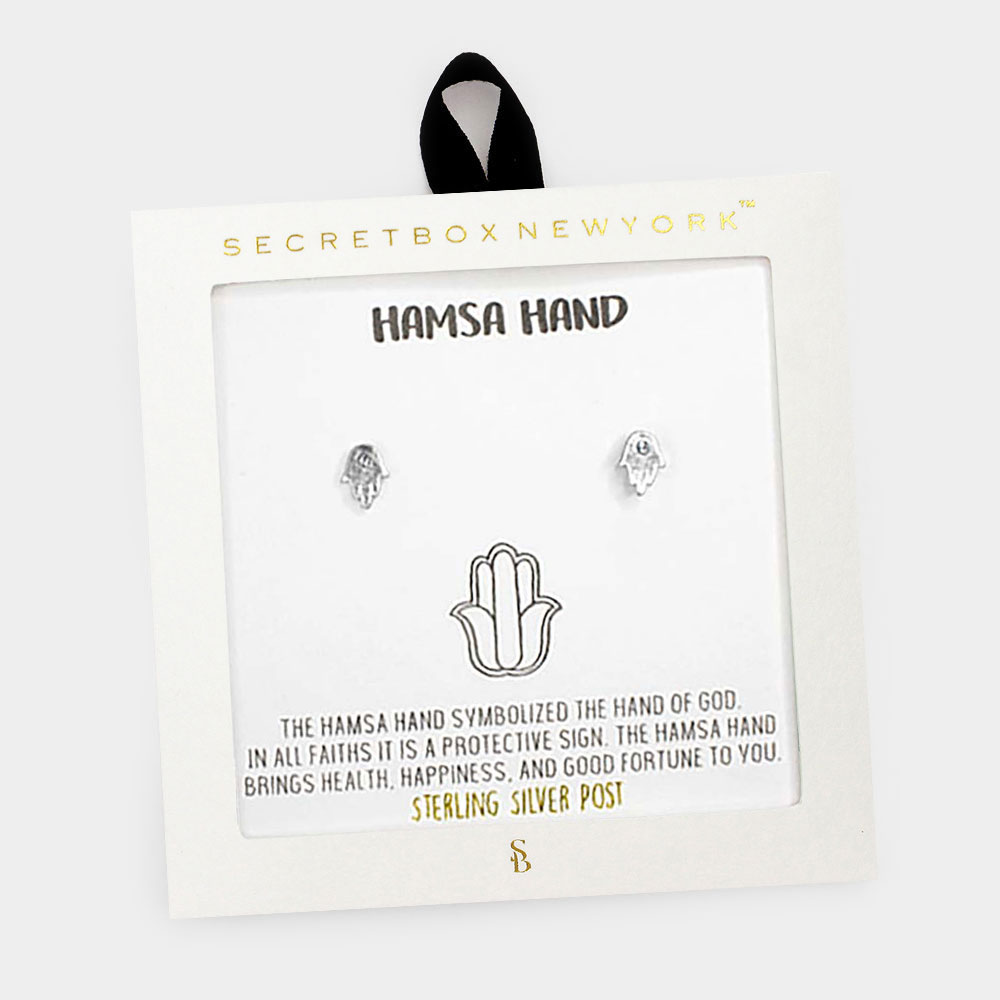 Secret Box_Sterling Silver Post Hamsa Hand Stud Earrings