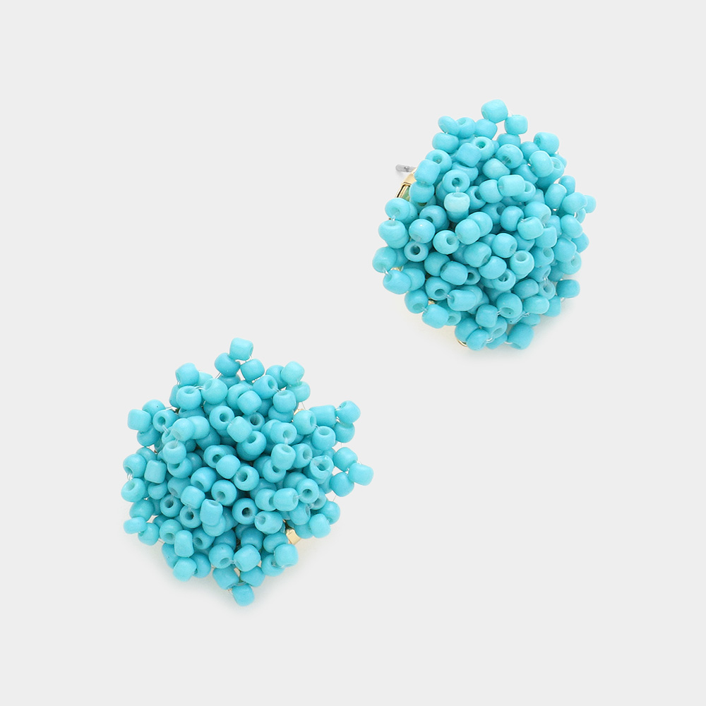 Felt Back Seed Beaded Hat Mustache Dangle Earrings