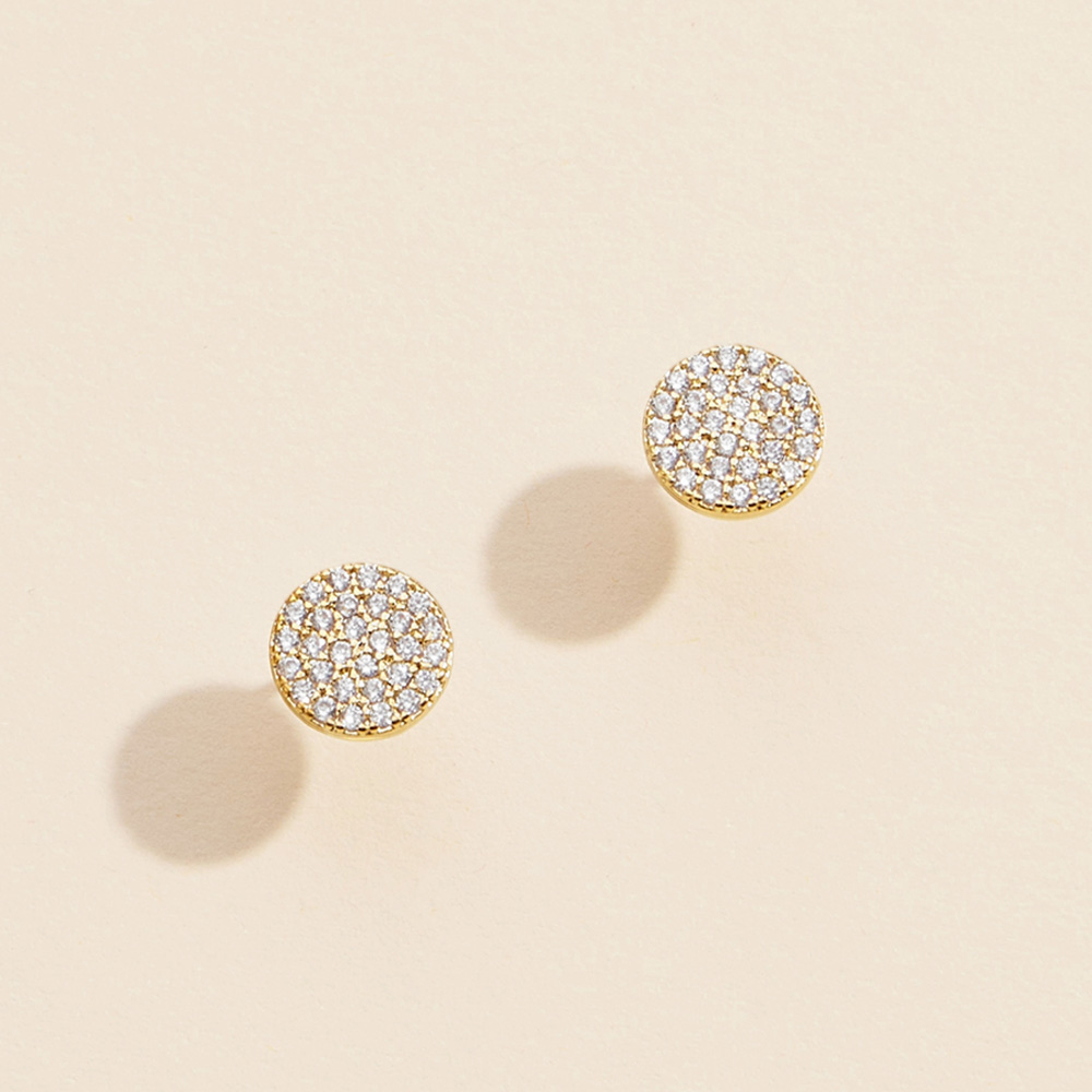 Semi Fine Collection - 18K Gold Dipped CZ Stone Paved Circle Stud Earrings