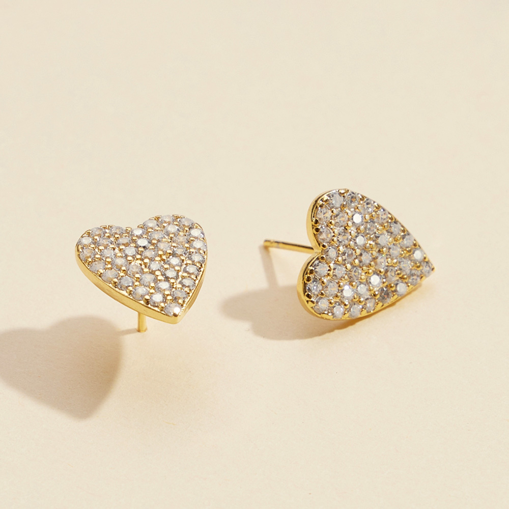 Semi Fine Collection - 18K Gold Dipped CZ Stone Paved Heart Stud Earrings