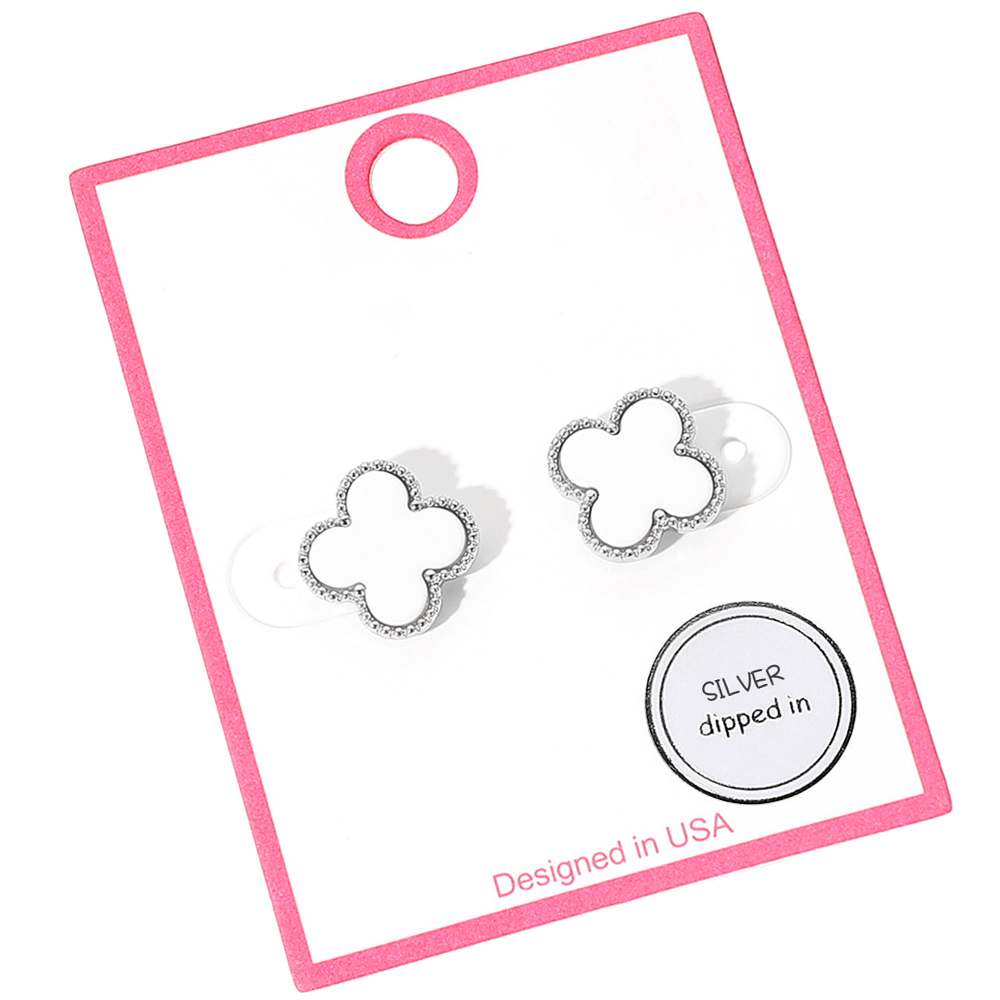 Silver Dipped Quatrefoil Stud Earrings Silver Dipped Quatrefoil Stud Earrings