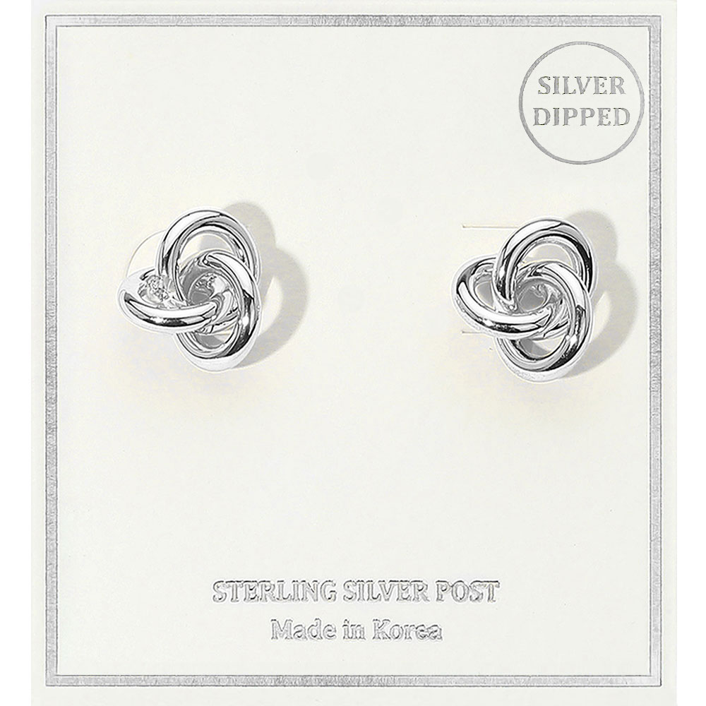 Details • Size : 0.5" X 0.5" • Elegant twisted knot stud earrings featuring a modern design with polished loops. A timeless accessory perfect for both casual and formal wear, adding a touch of sophistication to your look. • Lead and Nickel Compliant • Made In Korea • Sterling Silver Post • Sterling Silver Dipped