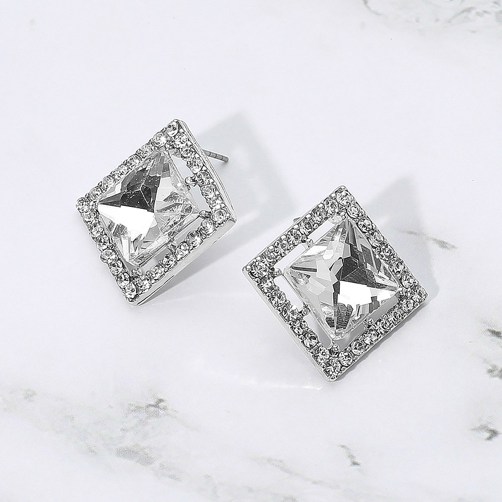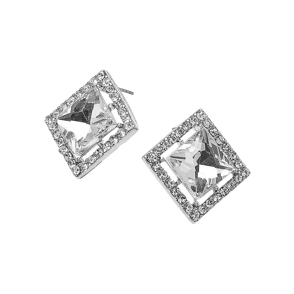 Details • Size : 1" X 1" • Post Back • Elegant square-cut gemstone stud earrings featuring a framed design with sparkling accent stones. A chic and modern accessory that adds refined shine to both everyday outfits and special occasions. • Lead and Nickel Compliant