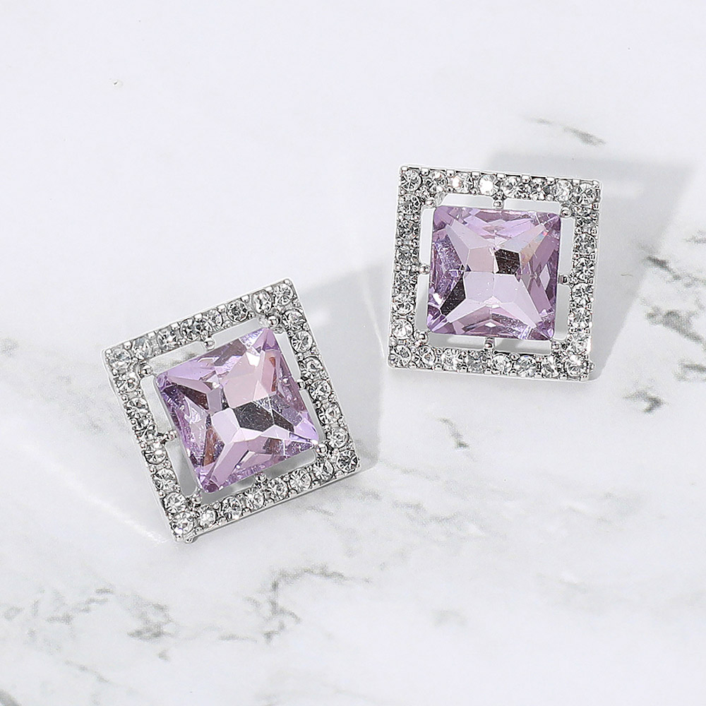 Details • Size : 1" X 1" • Post Back • Elegant square-cut gemstone stud earrings featuring a framed design with sparkling accent stones. A chic and modern accessory that adds refined shine to both everyday outfits and special occasions. • Lead and Nickel Compliant