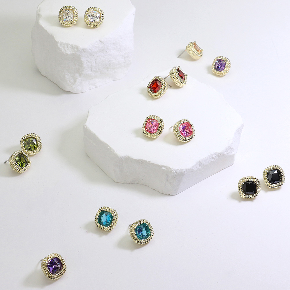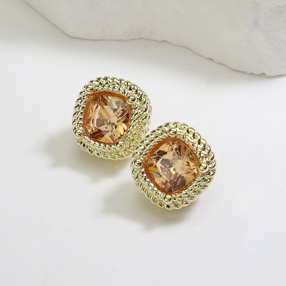 Details • Size : 0.5" X 0.5" • Post Back • Stylish cushion-cut stud earrings featuring a sparkling gemstone framed by an intricate rope-style border. Their timeless design brings elegance and charm, making them a versatile accessory for daily wear or special occasions. • CZ Cubic Zirconia