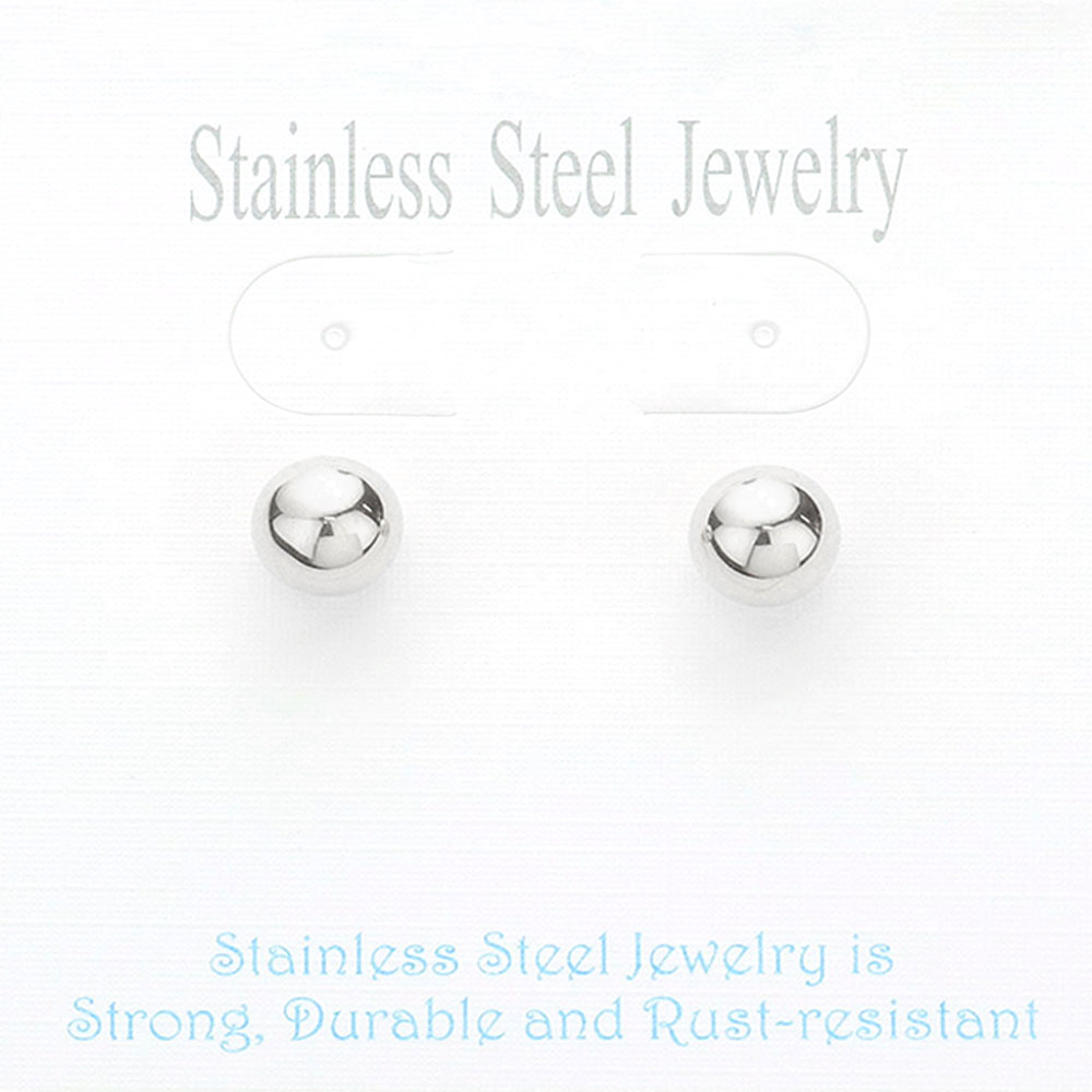 Stainless Steel 0.5 Inch Metal Ball Stud Earrings