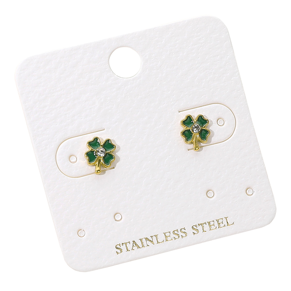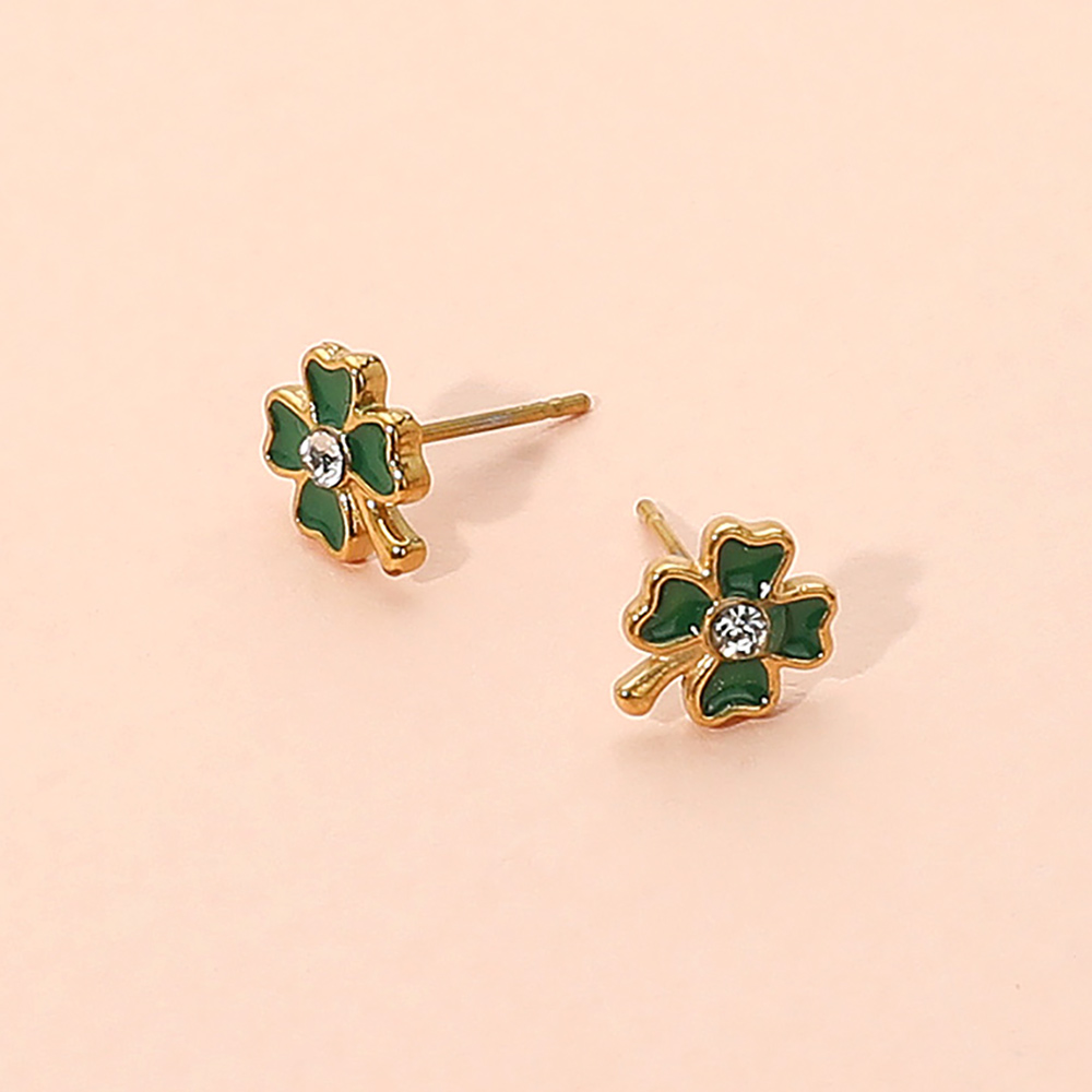 Gold Dipped CZ Stone Cluster Clover Stud Earrings
