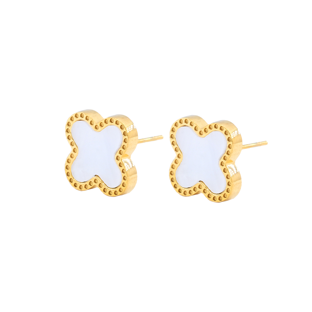 Stainless Steel Mother of Pearl Quatrefoil Stud Earrings