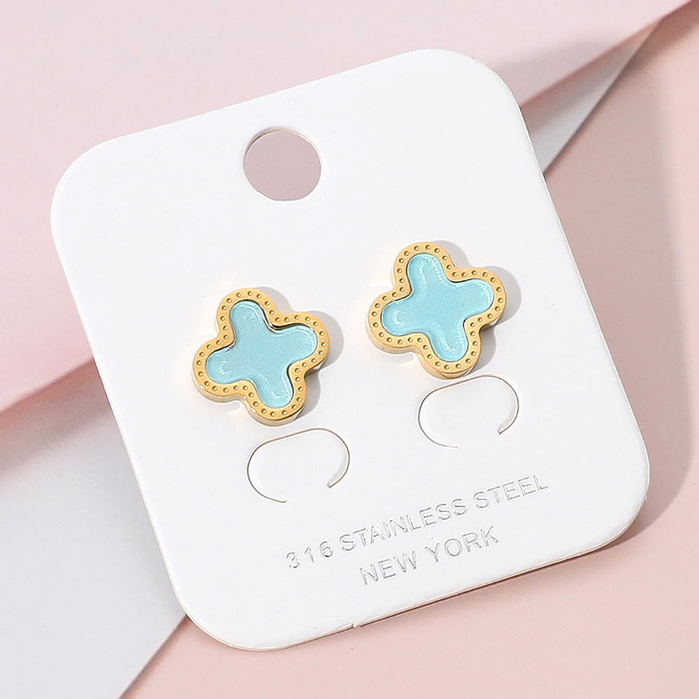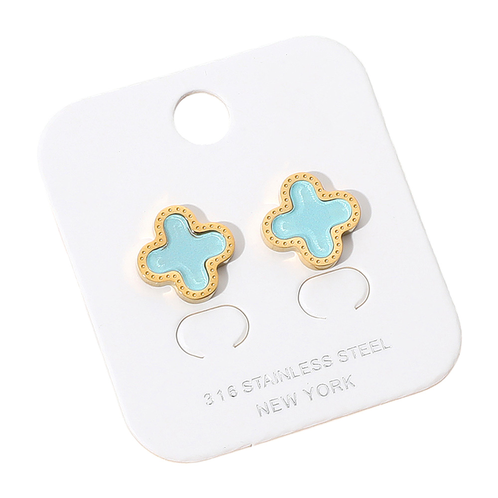 Stainless Steel Mother of Pearl Quatrefoil Stud Earrings
