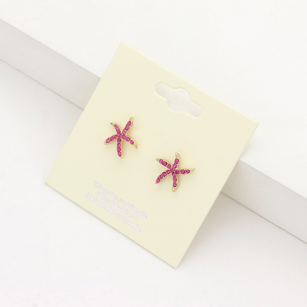 Stone Paved Colored Metal Whale Tale Dangle Earrings