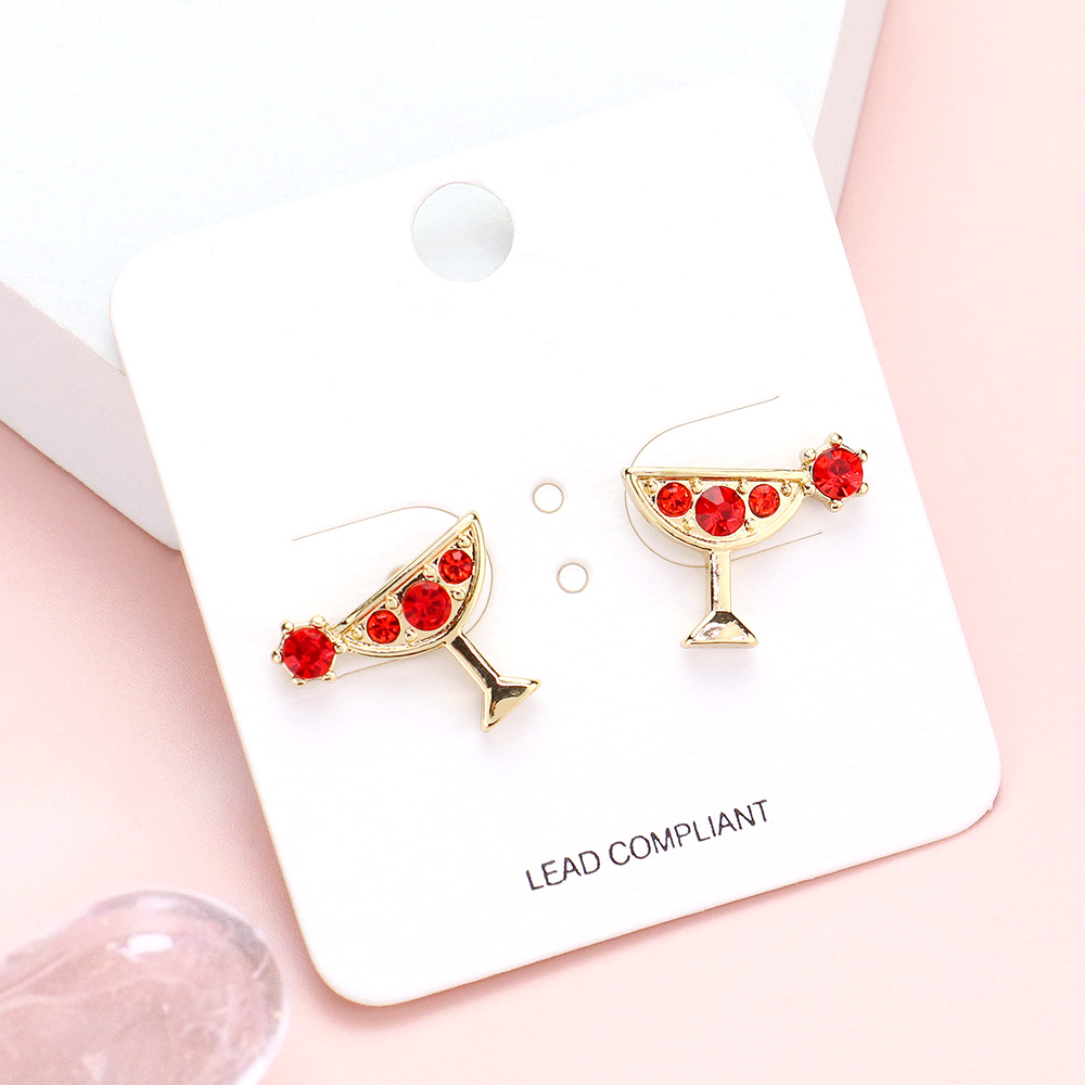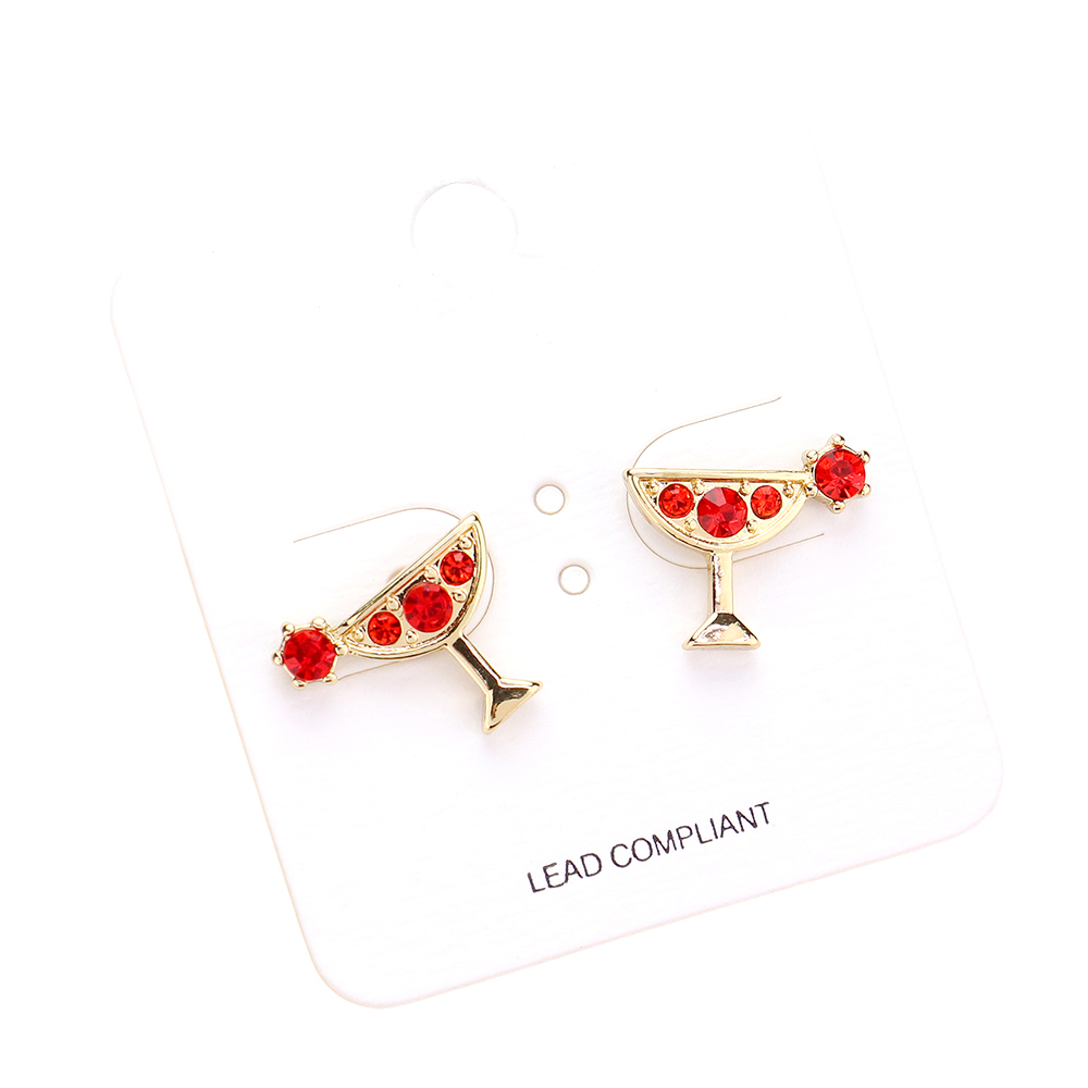 Brass Metal Cheers Message Cocktail Dangle Earrings